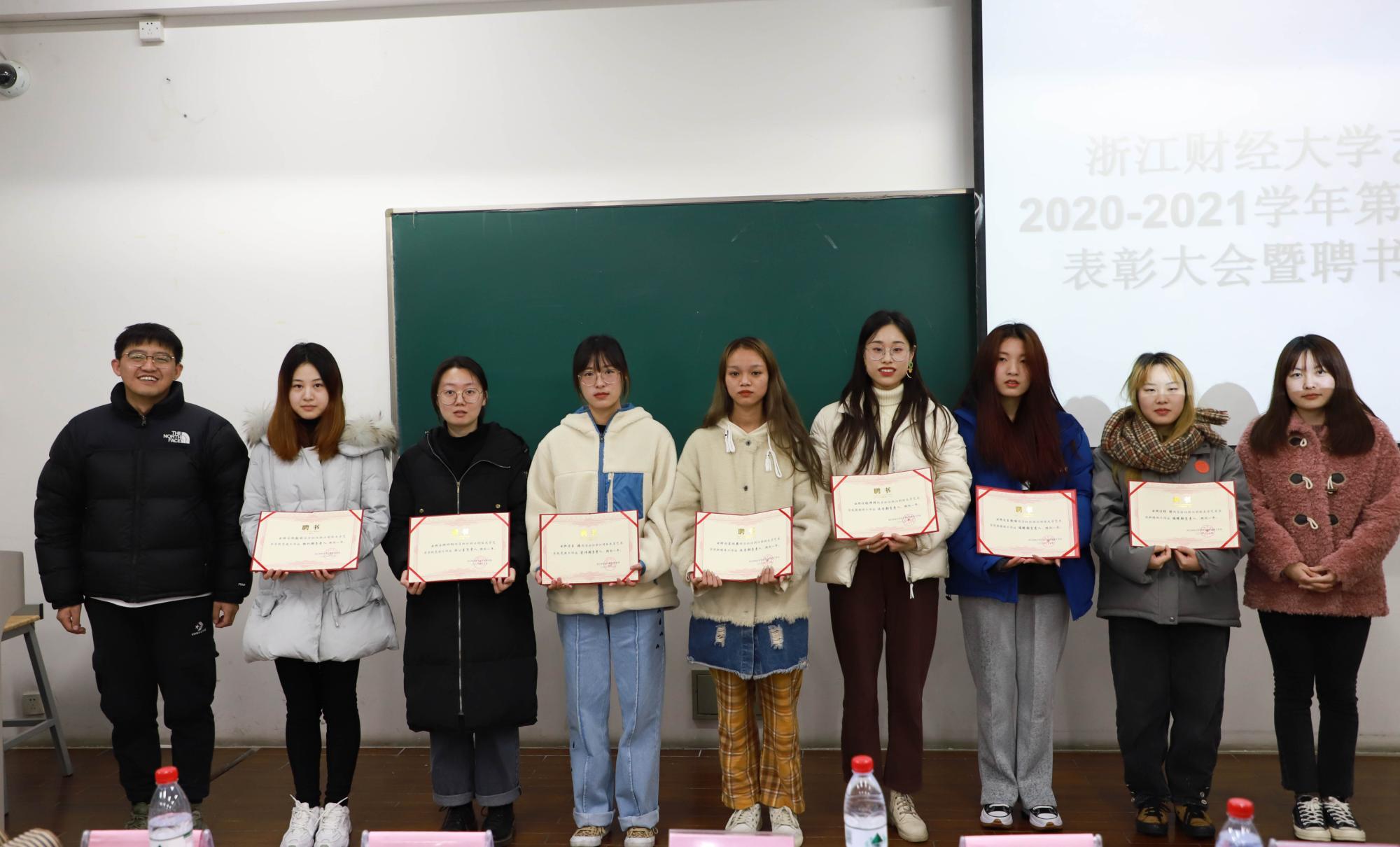 中心负责人刘灏、新媒体工作站站长李玉凤分别为优秀学生会干事颁发奖状