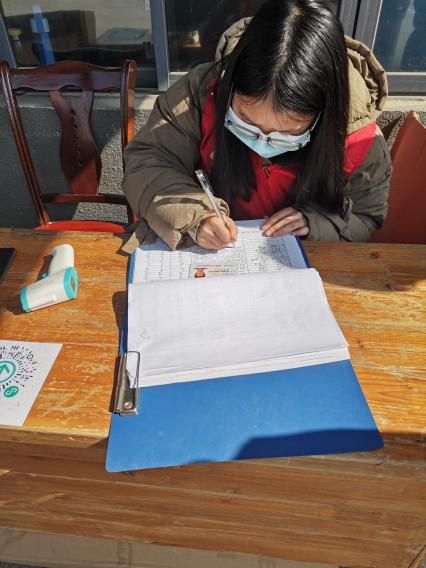 记得是做志愿者服务的第二天,我站在自助打印检测机旁提供指导服务,有一个小男孩儿没戴口罩在大厅顽皮的奔跑,正当我要上前制止时,他飞快的跑向不远处排队的父母,对我做鬼脸嘻嘻笑笑。我莞尔一笑,提醒他父母戴好小孩的口罩便又回到原位继续服务。让我感到意外的是,没过多久那位小男孩跑到我旁边,学我的样子,双手搭前,手心贴腹,笔挺挺的杵在那,昂首挺胸的样子活像只大公鸡,如果他再换上“红马甲”,活脱脱的又是一位小志愿者!这件事让我印象深刻,尤其是第二天又遇到这位小朋友跟着他的父母来取报告单,他又来我边上有模有样的站着。现在想来仍让我会心一笑。