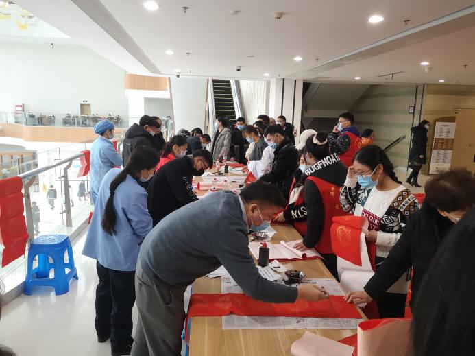 之后临近新年,医院邀请了市里的书法家来给住院部患者和医院里的医生写对联,我们又协助医院写对联晒对联挂对联,属实热闹又温馨。