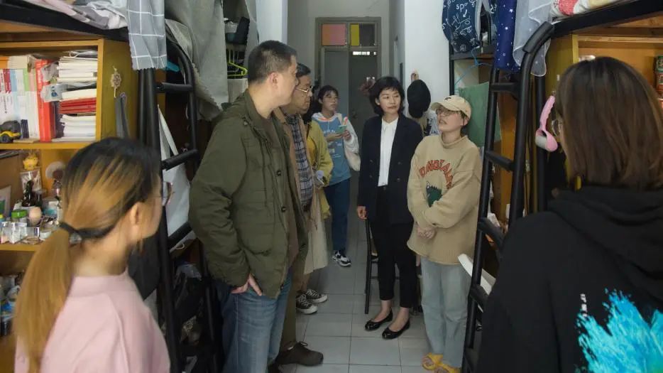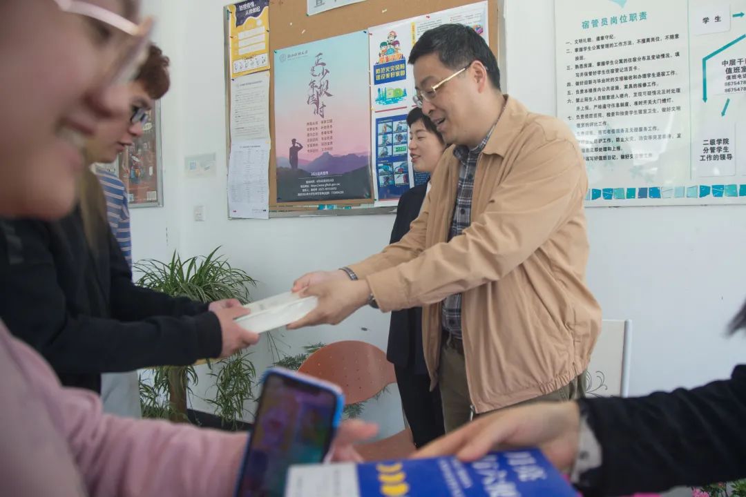 座谈会结束后,学院领导走访了部分学生宿舍,亲切地和同学们拉起家常,询问他们学习、生活等方面的情况,此外还向同学们赠予了各类书籍,将有温度的知识送进了园区。