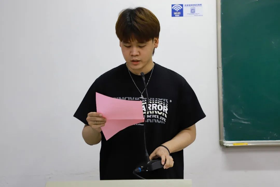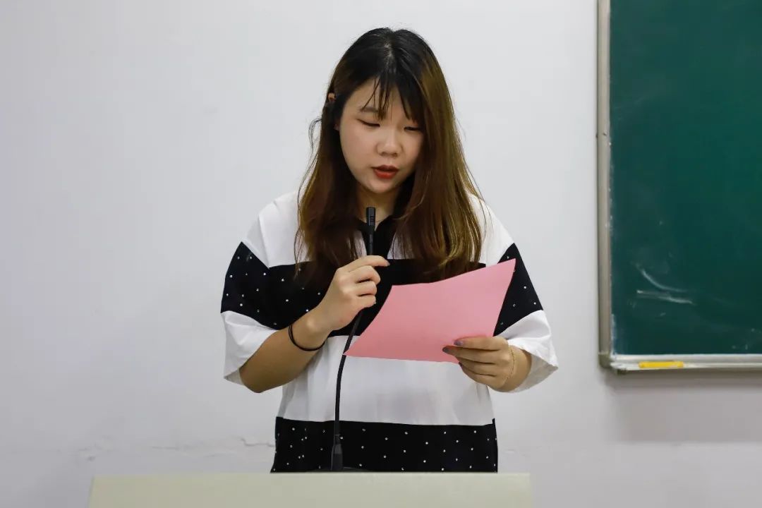 首先,院学生会执行主席郭泓文表示,很荣幸能代表主席团成员在这里发言,回首过去一年,在院领导、院团委老师以及主席团的带领下,在院全体团委学生会成员共同努力下,院团委学生会在不同的舞台都取得了不俗的成绩,这都要感谢大家的团结协作和辛苦付出。随后,她公布了新一届主席团以及各部门负责人名单,并对她们表示热烈的祝贺。最后,她希望新一届团学干部们能够继续坚持以“讲团结、比奉献、干实事、谋发展”为工作原则,以“服务同学”为根本宗旨,切实开展各项工作,志存高远,脚踏实地,一步一个脚印迈向更高的目标,把我院团委学生工作推上更高台阶。