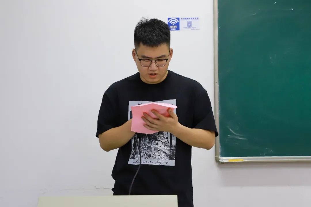 紧接着,学工办李桢老师做总结发言。他首先总结了这学期团委学生会以及学院各项学生工作,对大家取得的优异成绩进行了表扬与肯定,让全体与会人员充满了信心。同时他也指出了目前工作中存在的一些问题,并给大家提出了宝贵的意见,希望大家再接再厉。接着,他对新一届上任的团学干部表示热烈的祝贺并提出了三点希望:一是希望她们可以志存高远,脚踏实地,做好学院学生服务工作;二是希望她们遇到问题能够越挫越勇,不断前行,锻炼自己各方面的能力;三是希望她们能够敢于担当,合理安排时间,平衡好学习与学生工作。最后,他祝愿艺院的路能够走好走顺,不留遗憾,期待未来能够开启新的征程。