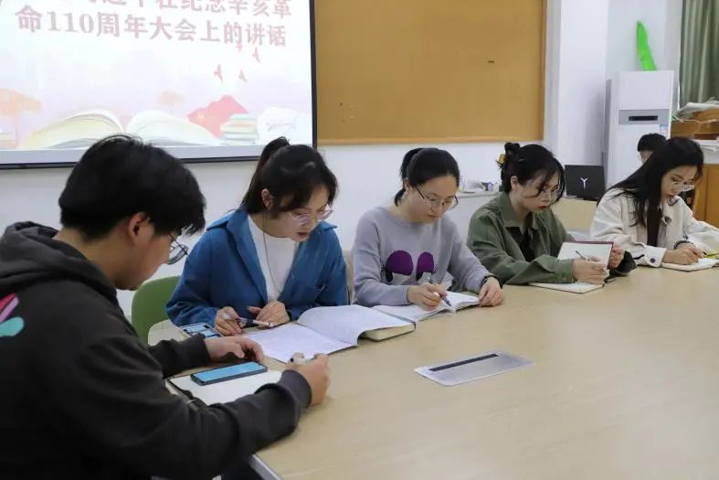 为贯彻学习习近平在辛亥革命110周年大会上的讲话精神以及习近平总书记给黄大年团队回信,艺术学院团委学生会近日在学院楼209A召开本学期第四次理论学习会。辅导员谢银环老师、团委学生会主席团成员以及全体团学干部参加了此次会议。会议由执行主席郑雯雨主持。
