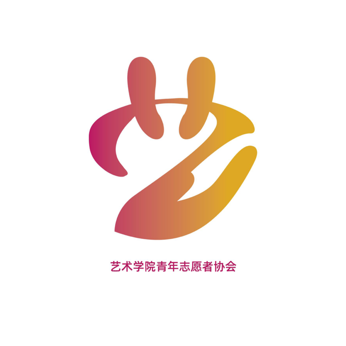 logo整体为手形状,象征志愿者关爱、帮助他人特征,其中五根手指头的两根作为草字头的两竖,螺旋的手掌状与草字头形成“艺”字,体现艺术学院青年志愿者协会logo的独创性,整体采用橙色象征青年人活力四射,积极向上的处事态度。