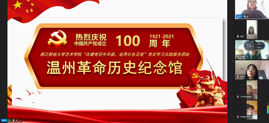 8月18日,ued体育 艺术学院“庆建党百年华诞,追寻红色足迹”实践服务团于钉钉开展了视频会议,通过线上VR展览以及实践服务团成员的PPT分享对温州革命历史纪念馆进行了“云参观”。
