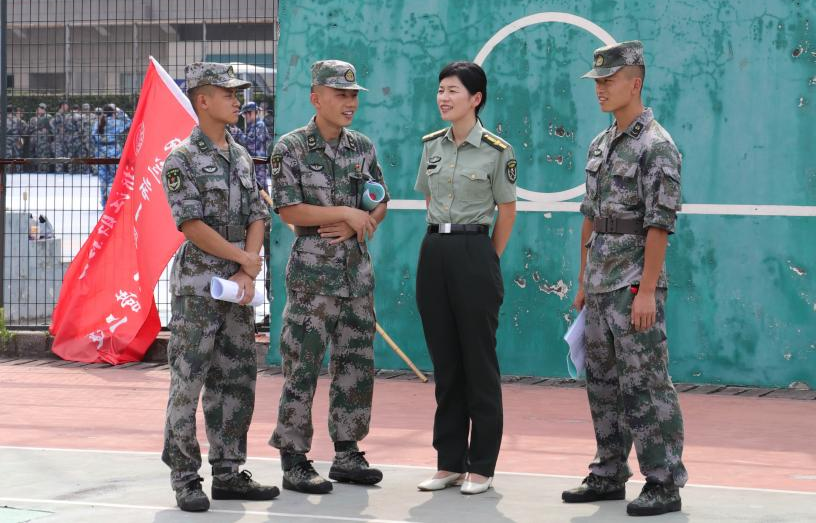 洪英强教官希望同学们要有集体荣誉感,团结、关心同学,尊敬师长,一起齐心协力共同圆满完成军训任务。
