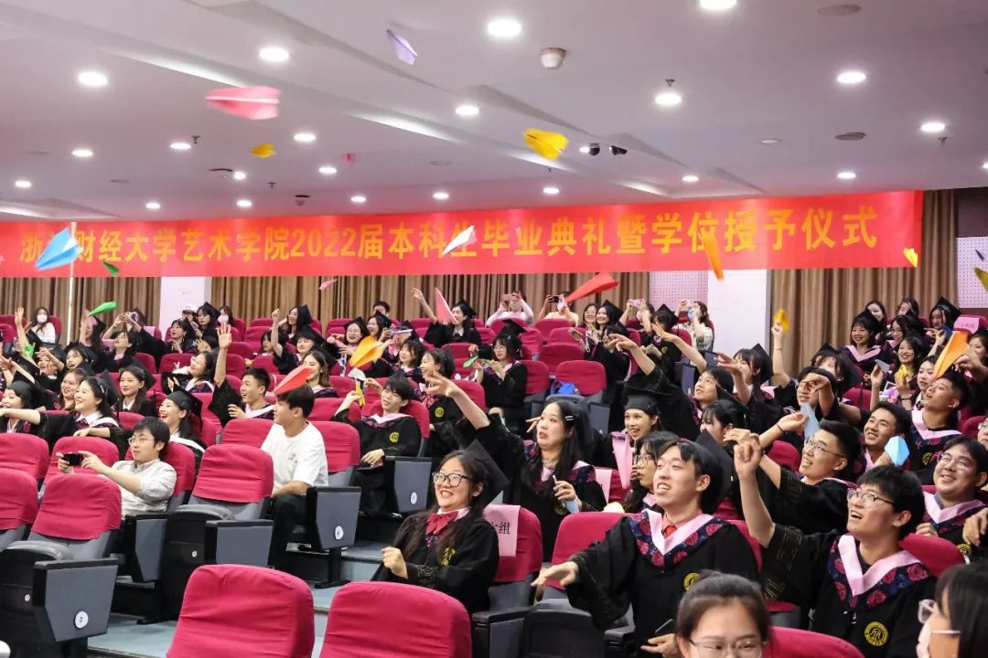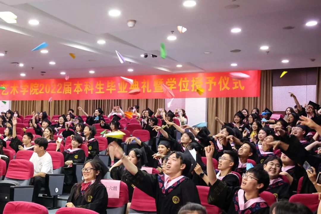 典礼最后,毕业生们与老师们一起将手中的彩色纸飞机用力掷向远方,一只只纸飞机,象征着一个个梦想,祝愿每一个走出艺术学院的追梦人都能梦想成真!