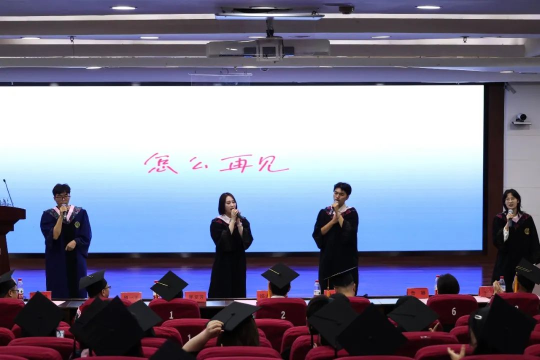 典礼接近尾声,辅导员李向昱老师和三位2022届本科毕业生从观众席逐个登上舞台,为大家演唱了四首毕业季歌曲——《想去海边》《青春纪念册》……,表达了他们此刻激动的心情以及最真挚的祝福,给这场晚会留下了浓墨重彩的一笔。希望“财”子佳人们如鲲鹏万里扶摇翱九天,踏歌而行不负青春韶华。
