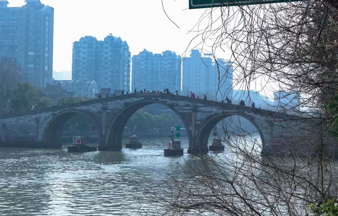 拱宸桥是亚运会吉祥物宸宸的来源,孩子们对它都极大的兴趣。跟随者志愿者的脚步穿过拱宸桥,泛着青苔的石板,风吹日晒的桥栏,桥下镇水心的石兽,都是历史的见证者。踱步过桥,便来到了与桥西历史文化街区,巷弄有着江南水墨丹青式的独特魅力。