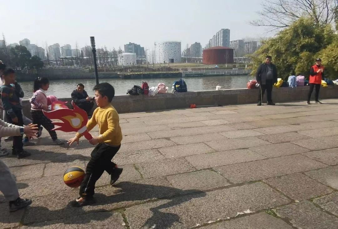 为增进孩子们与志愿者们间的相互了解,使其获得更好的体验,在参观结束之后,在运河广场开展了吸管运输和萝卜蹲的小游戏。孩子们都积极参与,融入其中。团队之间的游戏互相合作,最后合照留念,都收获了一次快乐的体验。