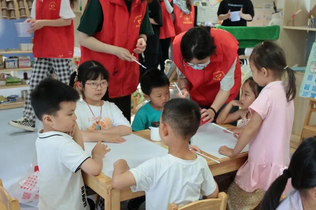 愉悦的时光总是短暂,在活动最后,同学们协助小朋友收集画作,整理画具。小朋友们都积极举起自己的画作,展现自己的奇思妙想。