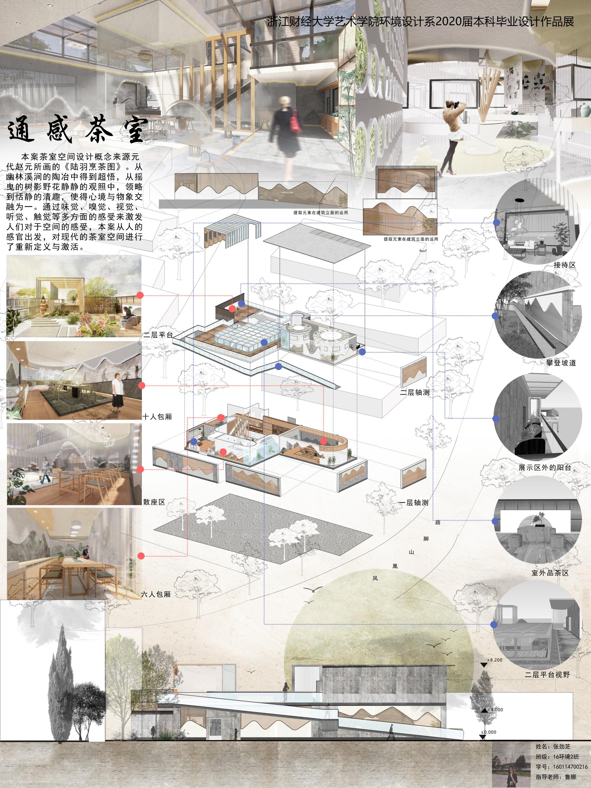作品说明:本案通感茶室空间的灵感来自于元代赵元所画的《陆羽烹茶图》。从幽林溪涧的陶冶中得到超悟,从摇曳的树影野花静静的观照中领略到恬静的清趣,是溶于心灵深处的一种体察宁静,自在怡然的心境与清幽静谧的物象交融。从人的五感等多方面来营造茶室的意境。
