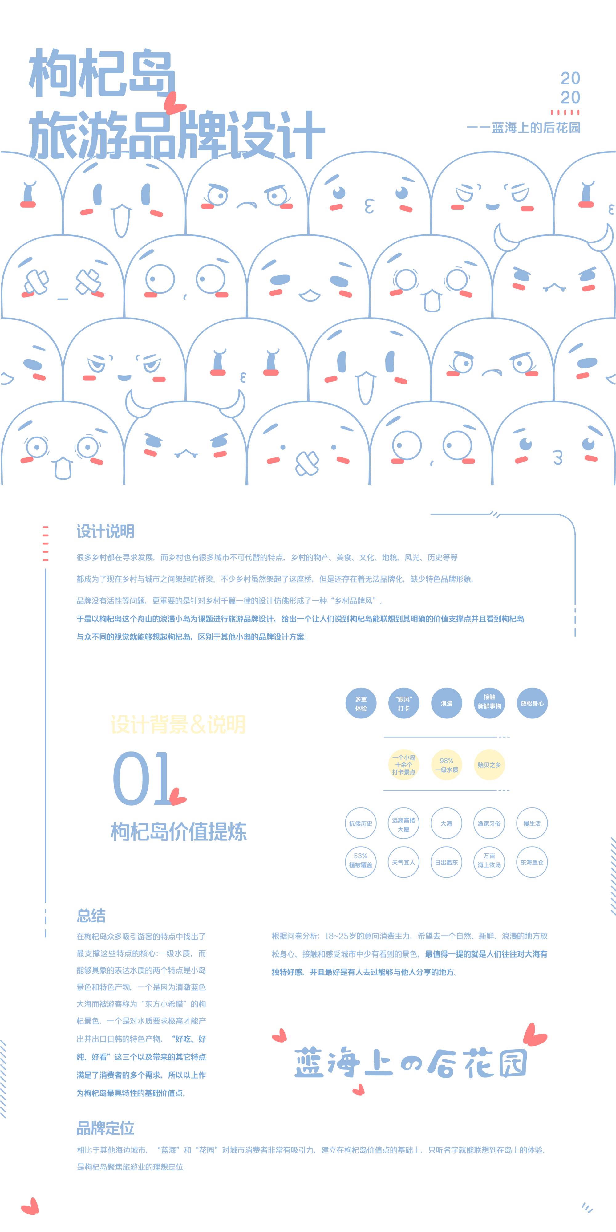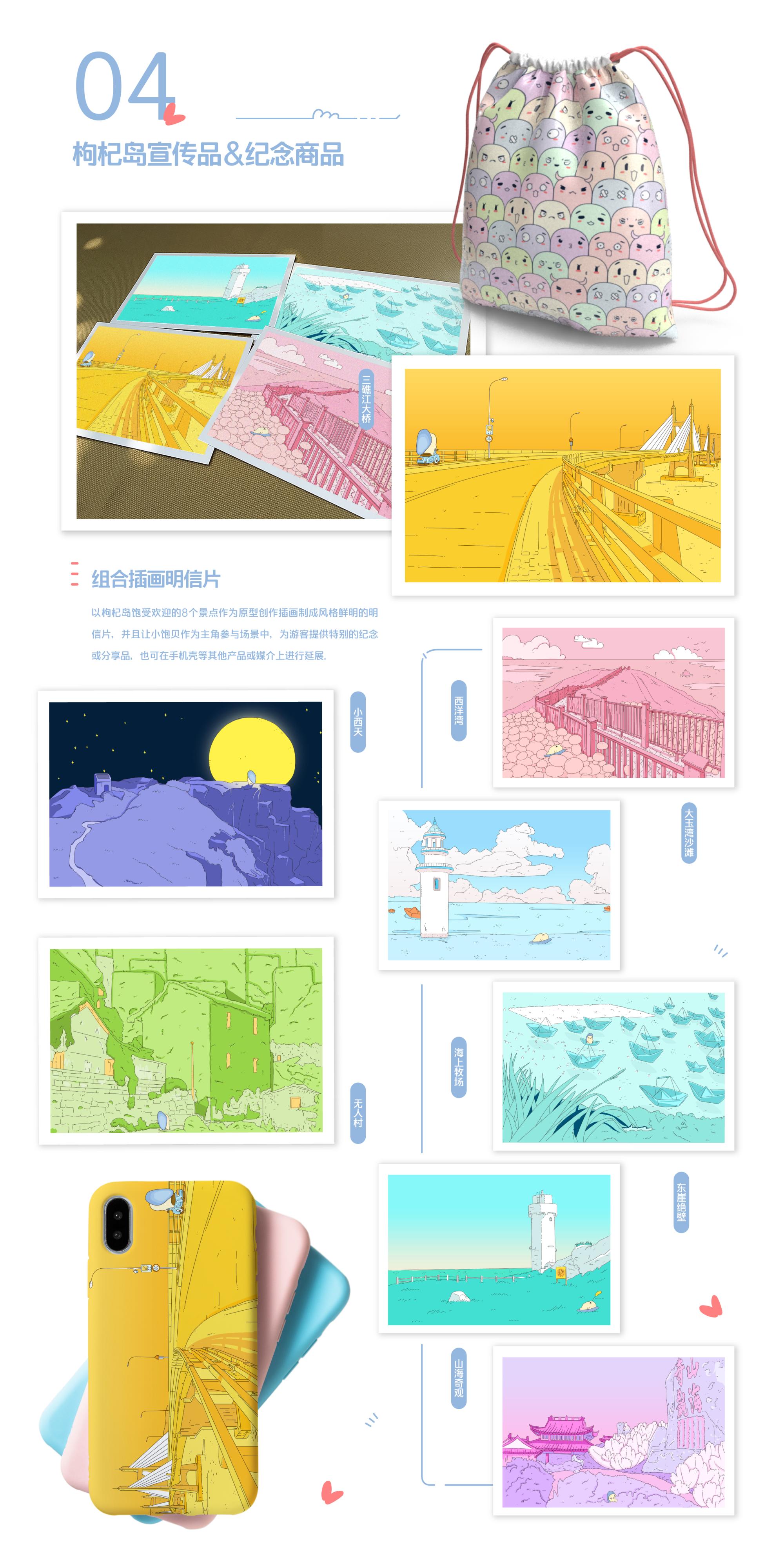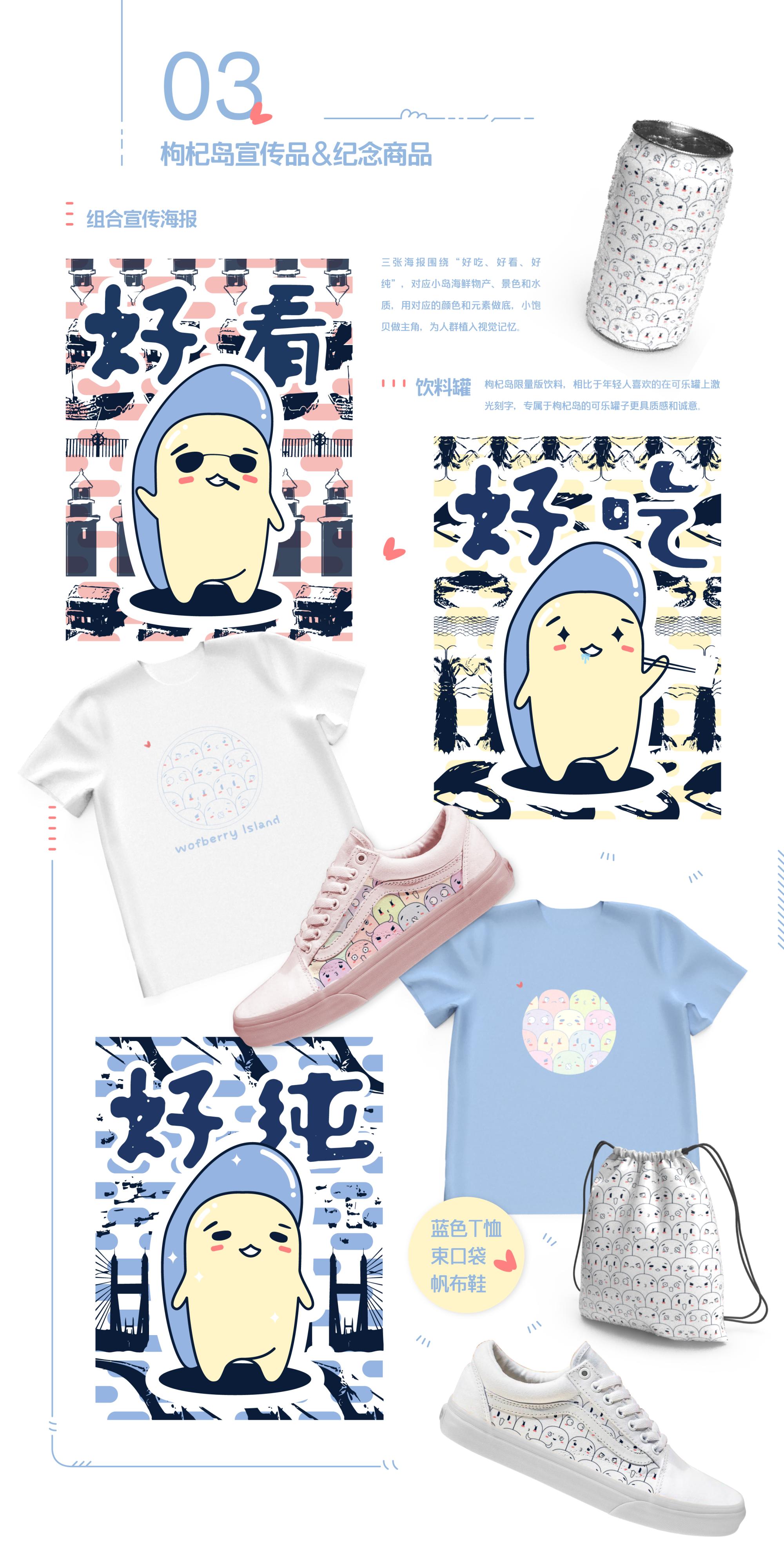 为枸杞岛这个舟山浪漫小岛设计旅游周边品牌,为其价值支撑点找到有趣载体,让人一眼区别于其他乡村,呼吁正在寻求发展并以物产、美食、文化、风光等城市不可代替的特点架起乡村与城市间桥梁的乡村摆脱千篇一律的旅游品牌风格,并研究传统乡村品牌设计的多元化审美风格,追求百花齐放式的乡村发展路线。