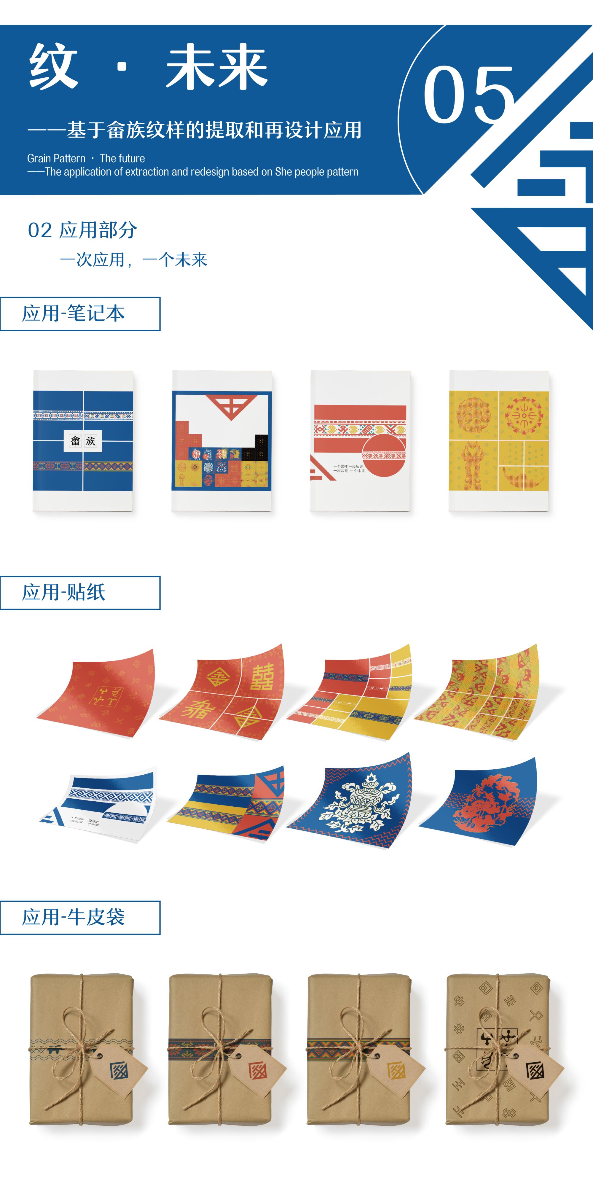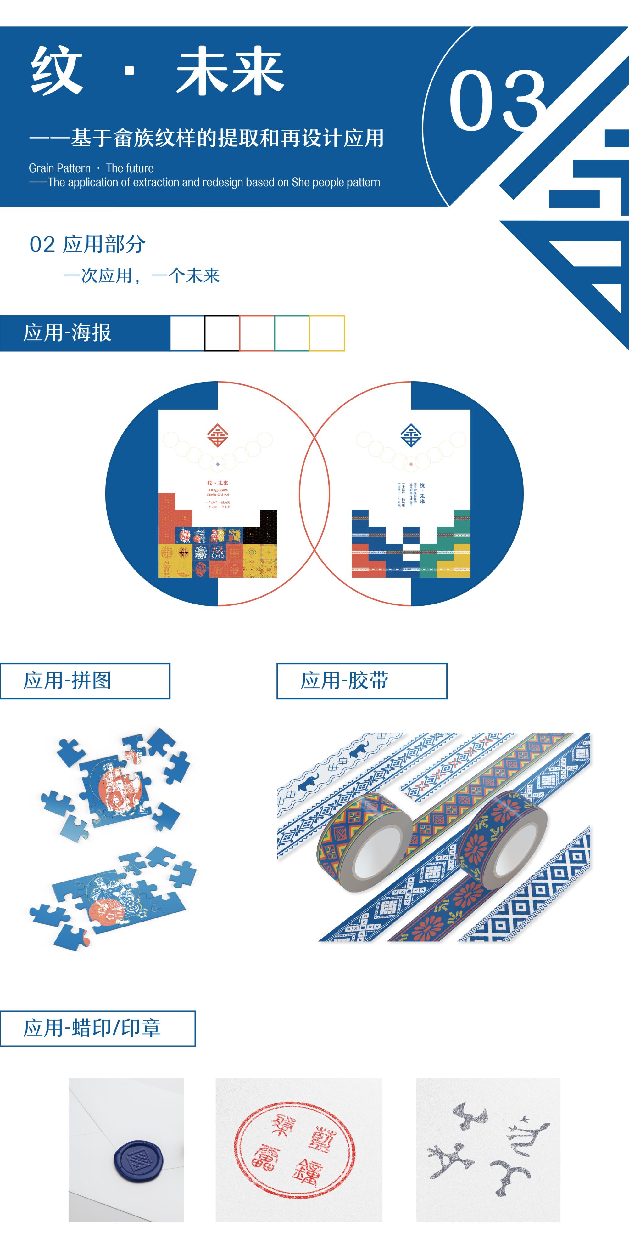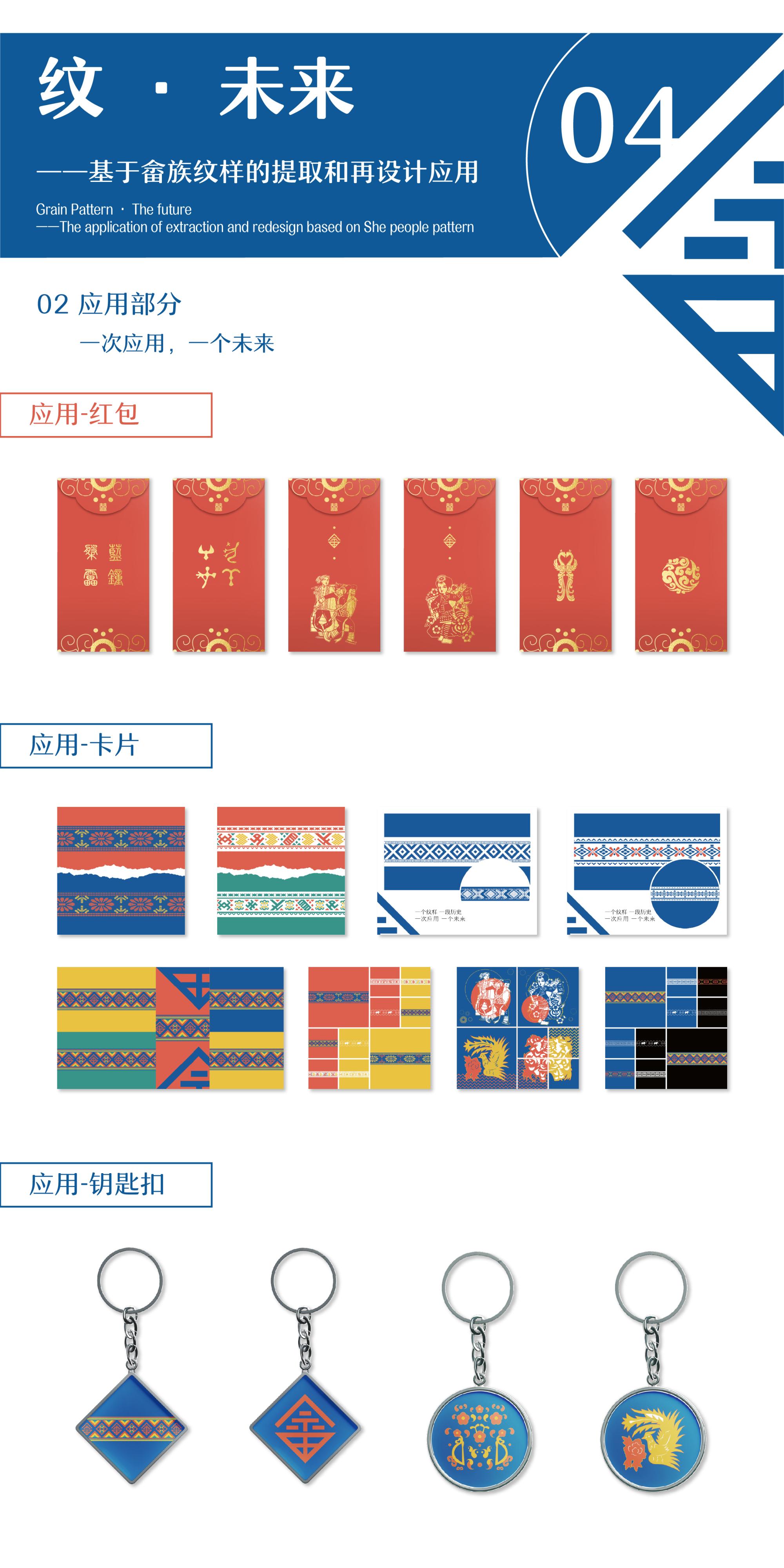 畲族是一个没有文字的民族,畲族纹样即起到了“以纹代文”的表意作用。本次设计的主题“纹”未来音似问未来、吻未来,用“纹样”发声,寓意畲族纹样的未来和畲族文化及民族文化的未来。借助纹样及应用产品的展现,传承和创新畲族文化并传播新的文化理念。