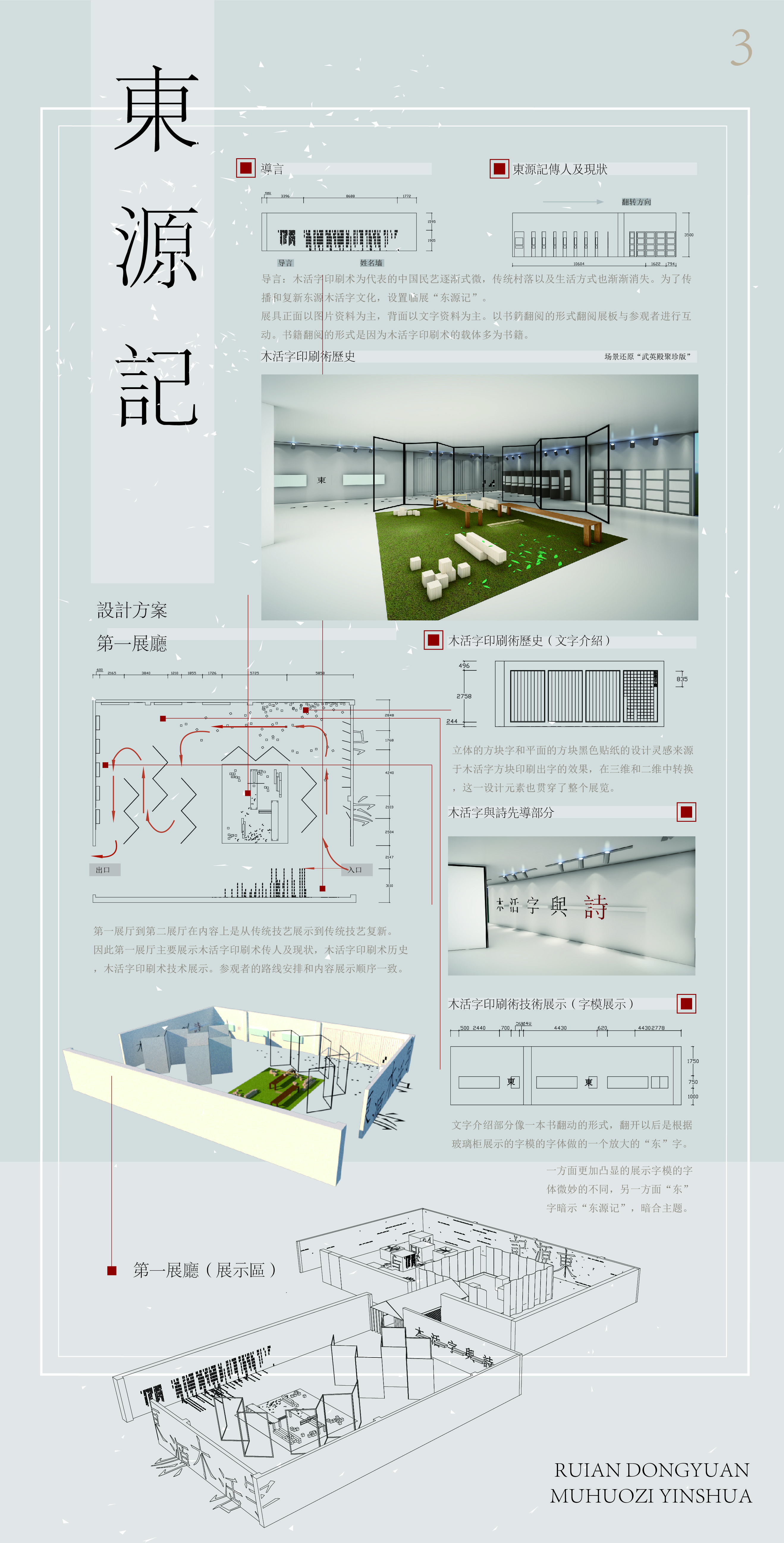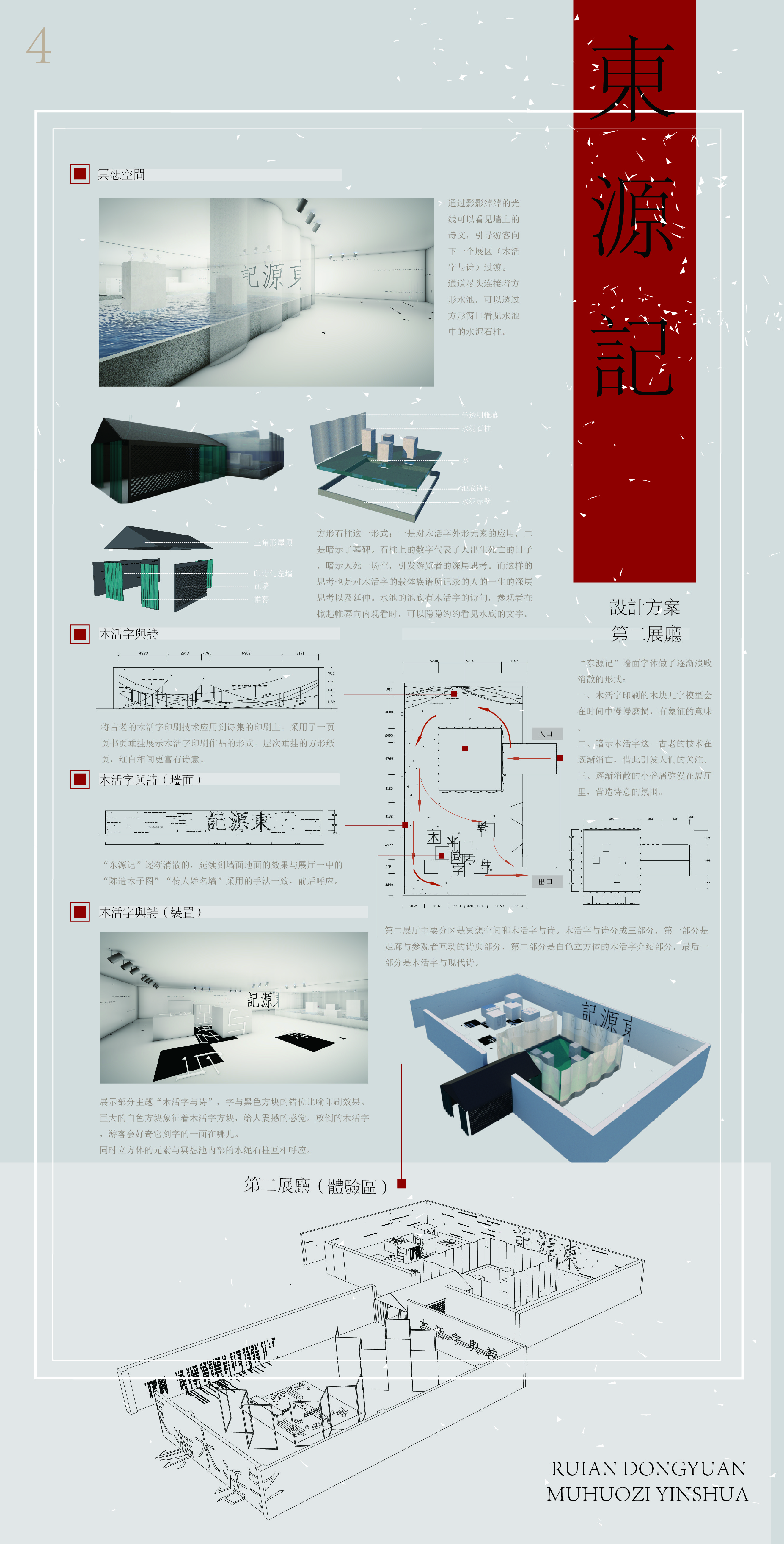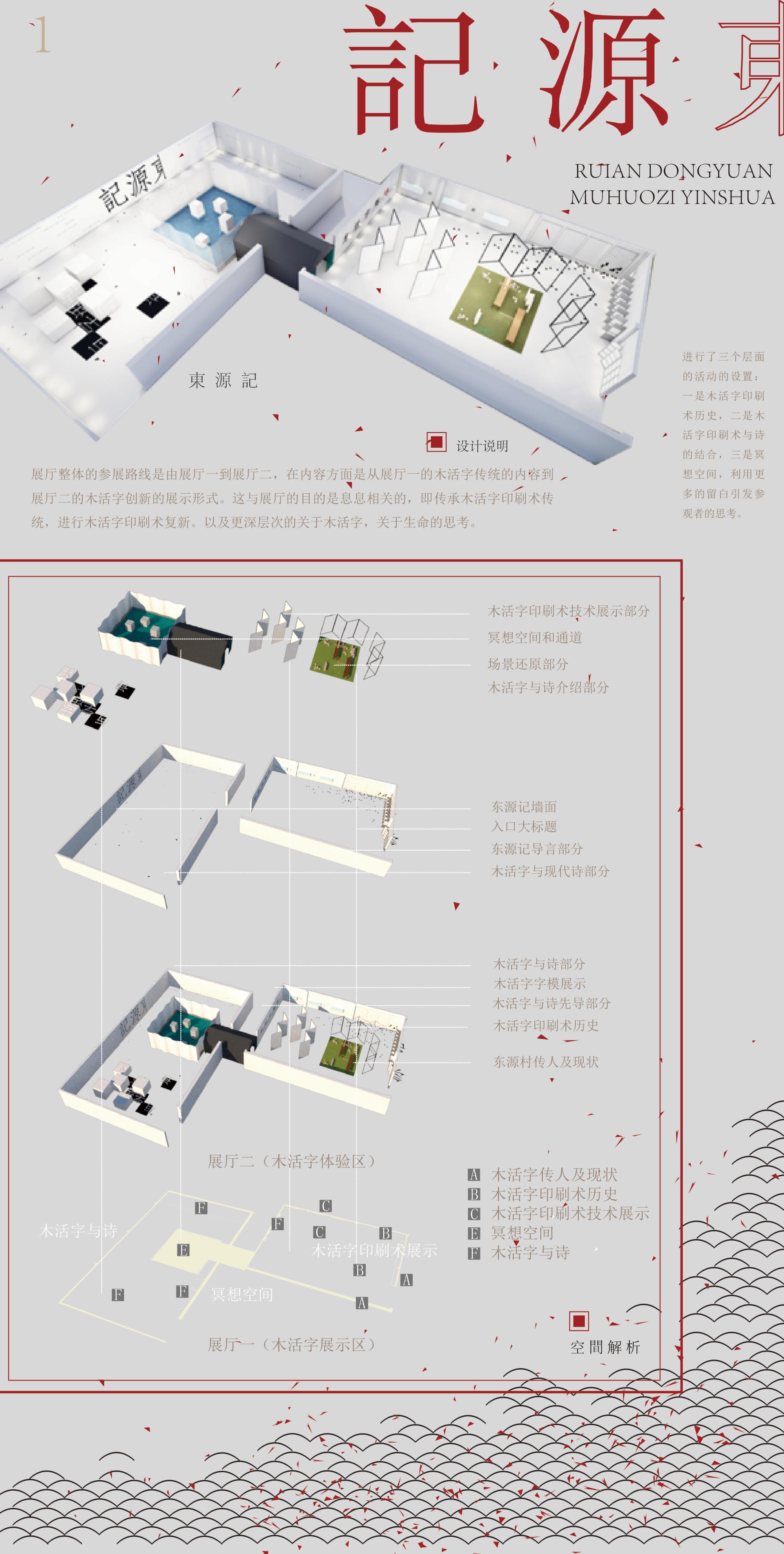 “东源记”是以传承和复新瑞安东源木活字印刷术为主题的展览。通过展示木活字印刷历史、东源村文化、印刷的诗页等吸引参观者对传统木活字印刷的兴趣,引发参观者关注这一古老技艺的逐渐消亡。在这个过程中,通过对传统木活字印刷载体“宗谱”的挖掘和展示,以引发观众对生命更迭的深层思考。