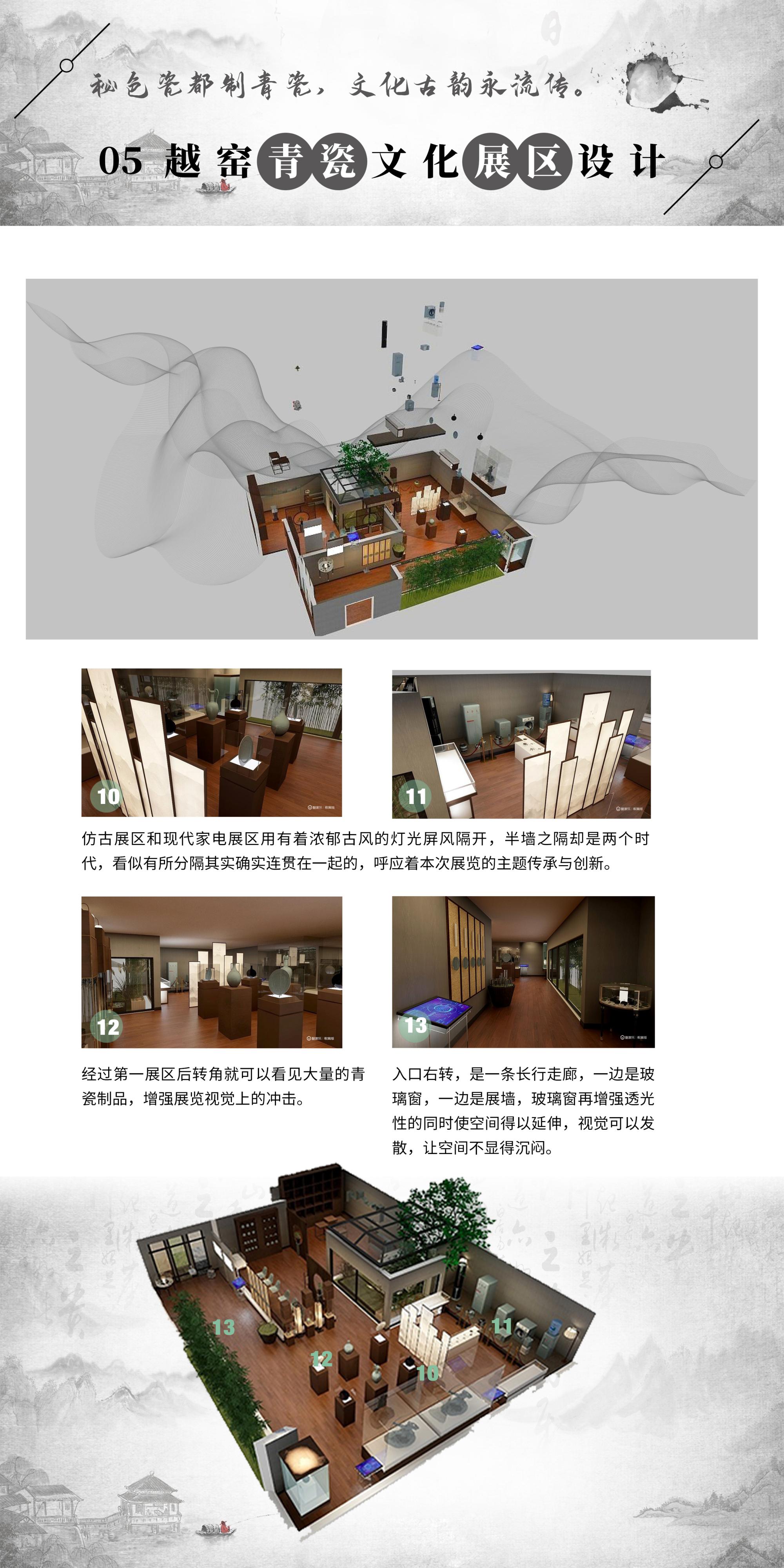 力图借助现代设计方法丰富和拓展当代青瓷文化的内涵与外延。作品探讨青瓷的展示如何从以往“封闭的艺术空间”向公共领域的开拓。通过新观念新形制的探索,为当下青瓷文化与现代制造产业融合与发展提供一个实验性的支持。
