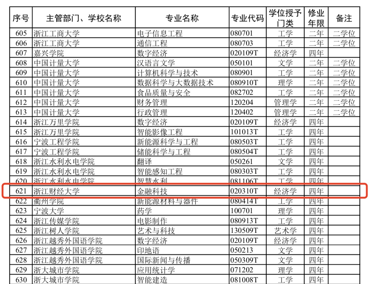 “春江水暖鸭先知”,基于金融科技行业的迅速兴起,各高校为培养适应金融科技发展所需的复合型专业人才,纷纷设立金融科技专业。近五年,中央财经大学、对外经济贸易大学、西南财经大学,南开大学、暨南大学等一百多所高校增设了金融科技专业。我校于2022年成立浙江省首个金融科技学院,并于省内首批增设了金融科技专业,该专业采用“新商科+新工科”的教育模式,注重经济学与金融学、统计学、计算机技术尤其是大数据、区块链、人工智能等多学科交叉知识的学习和掌握,突出现代科技在金融领域的融合应用。