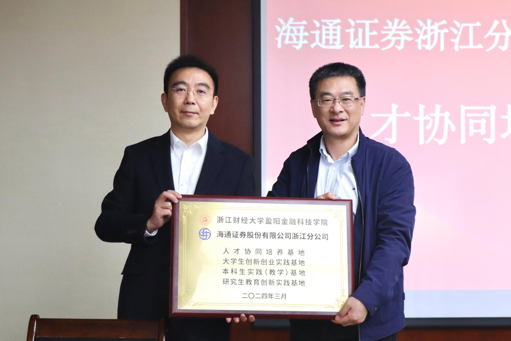 3月26日,盈阳金融科技学院与海通证券股份有限公司浙江分公司举行人才协同培养基地协议签订仪式。校党委副书记徐晓东,海通证券股份有限公司浙江分公司党委书记、总经理金晓阳,党委委员、副总经理邹宁,党委委员、杭州富春路营业部总经理汪峥,绍兴劳动路营业部总经理徐斌,宁波和济街营业部总经理孙嵩,人事培训岗吴晓立,我院党委书记黄文礼、副院长傅俊辉、师生代表出席了人才协同培养基地协议签订仪式。仪式由我院副院长孔繁岗主持。