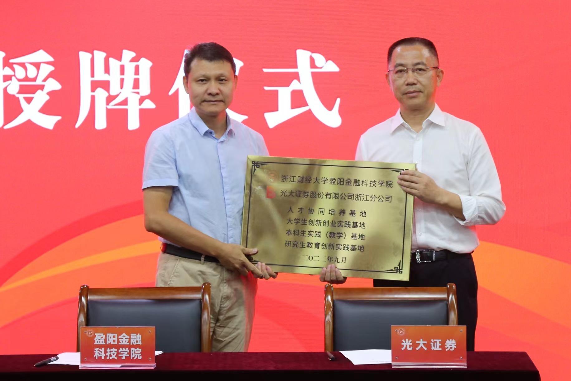 月,光大证券股份有限公司浙江分公司与盈阳金融科技学院签订人才协同培养战略合作协议书。