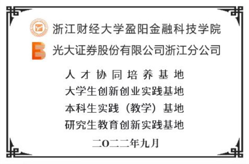 光大证券股份有限公司浙江分公司—盈阳金融科技学院人才协同培养基地