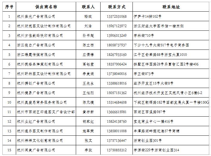 根据校审计工作联席会议整改意见,2018年,学校对文印制作进行集中采购,通过一定采购程序,在公开、透明、公正的前提下确定了十五家入围供应商,实行文印制作定点服务。入围供应商具体名单、联系方式如下: