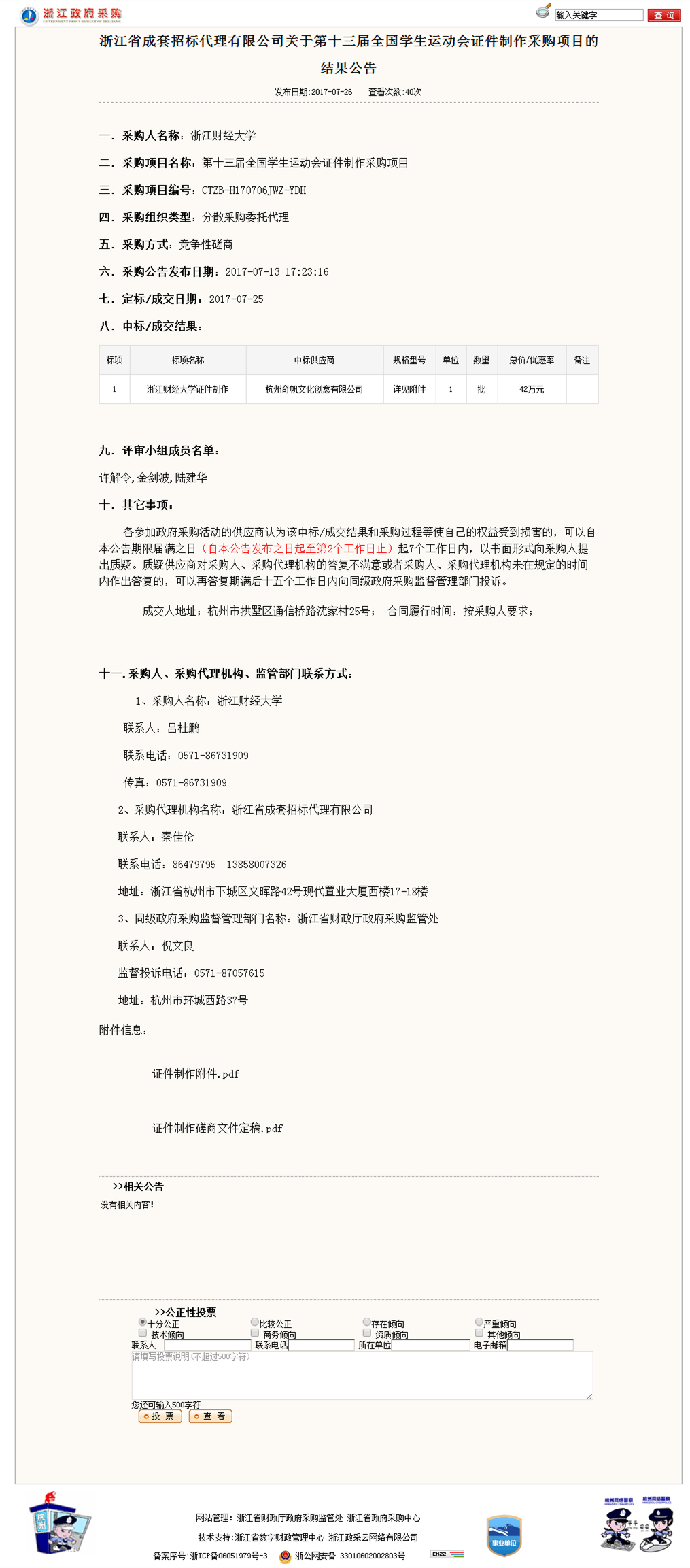 上一条:【CTZB-H170704JWZ-YDH】关于ued体育 餐饮供应服务的结果公告下一条:【CTZB-H170703JWZ-YDH】关于第十三届全国学生运动会吉祥物毛绒玩具制作采购项目的结果公告