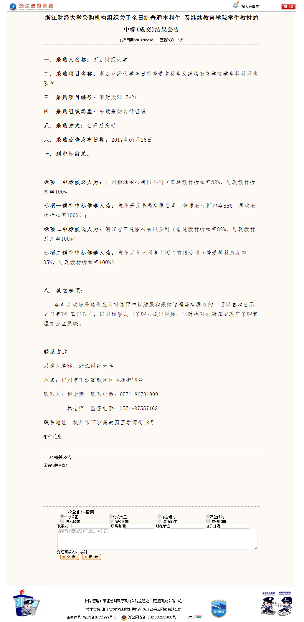 上一条:【浙财大2017-08】关于ued体育 公务出行用车服务项目的预中标结果公示下一条:【浙财大2017-22】关于ued体育 喷绘、展板等展览用品制作服务项目的中标(成交)结果公告