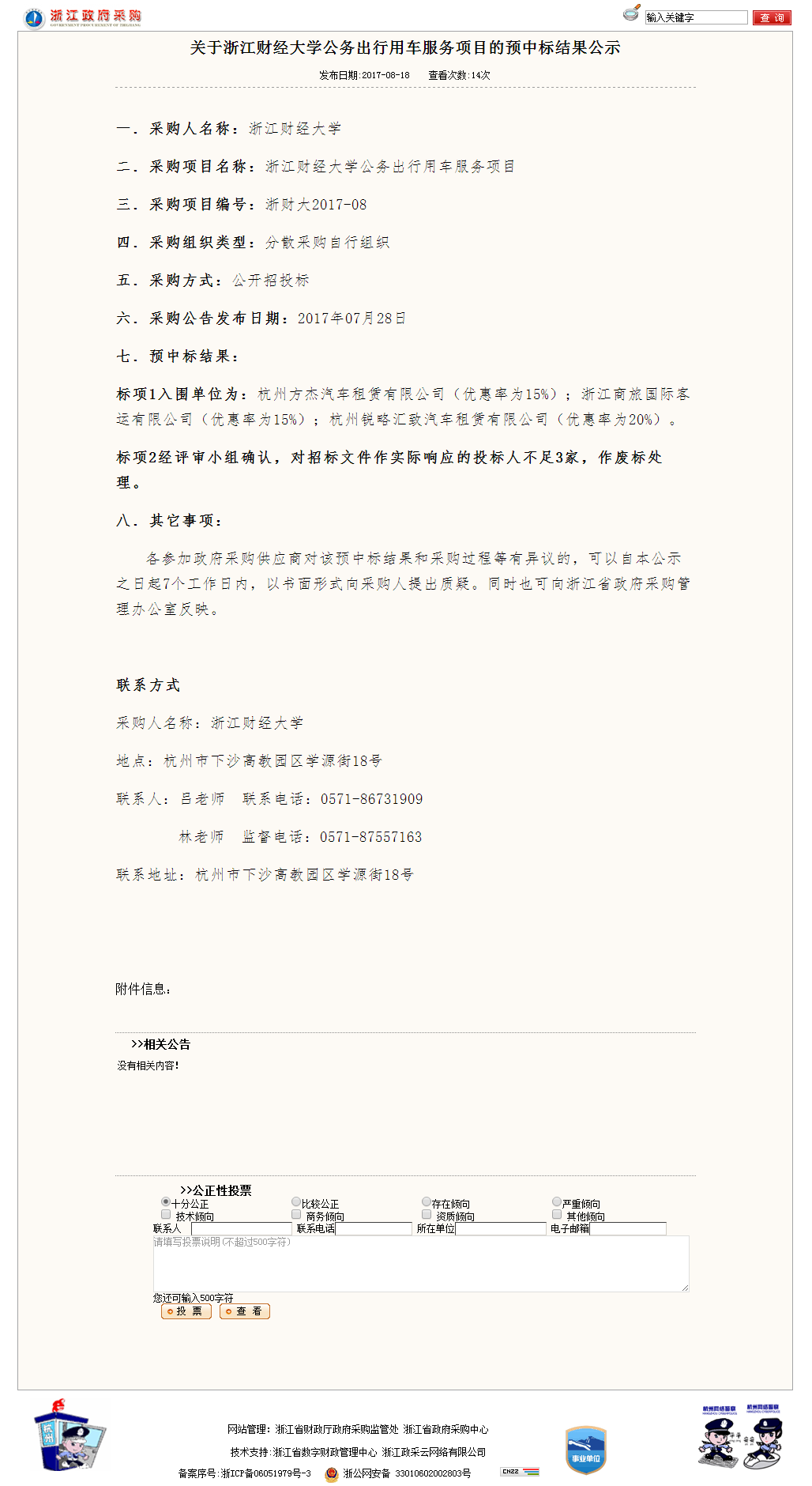 上一条:【浙财大2017-19】关于校园网中国联通500M出口链路项目的中标(成交)结果公告下一条:【浙财大2017-21】全日制普通本科生及继续教育学院学生教材的中标(成交)结果公告