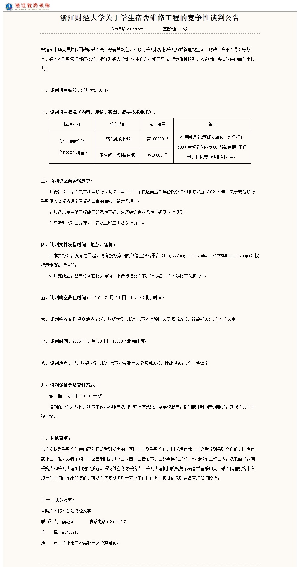 上一条:【浙财大2016-12】ued体育 食堂蔬菜定点采购供应商选定项目的公开招标公告下一条:【ZJPEC-CJ-54】ued体育 关于多媒体教室改造工程的公开招标公告