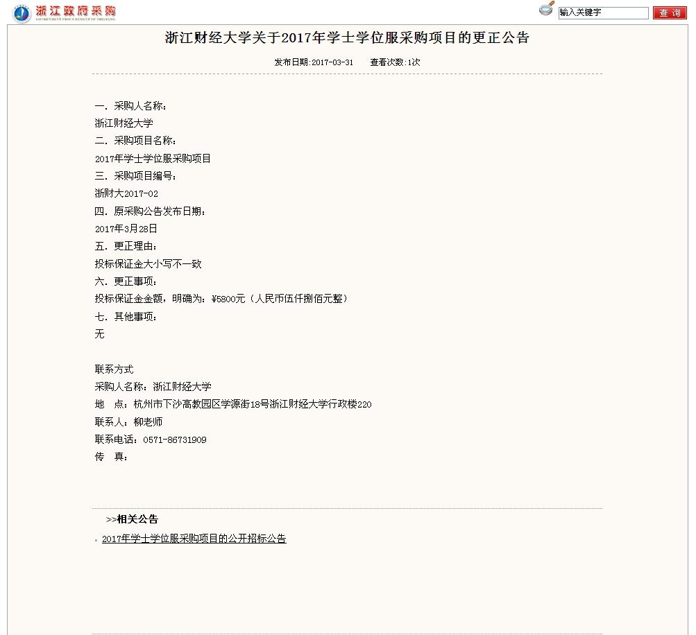 上一条:【ZJPEC-CJ-61】ued体育 2017年下沙校区保安服务(含监控维保)项目的公开招标公告下一条:【浙财大2017-02】ued体育 关于2017年学士学位服采购项目的公开招标公告