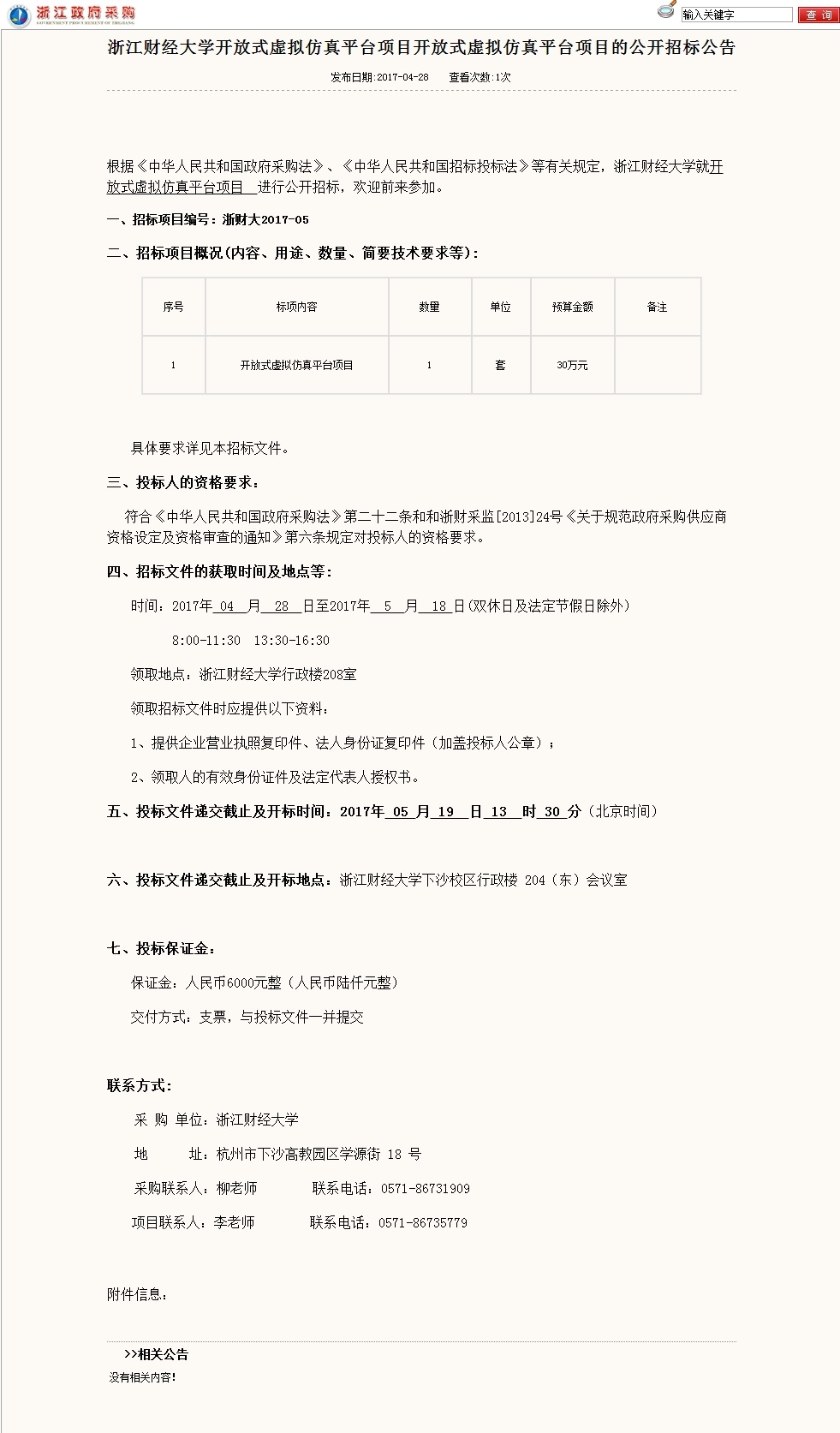 上一条:【浙财大2017-07】ued体育 关于入学新生床上用品采购的公开招标公告下一条:【浙财大2017-06】关于第十三届全国学生运动会全自动游泳计时系统服务项目的单一来源采购谈判公告