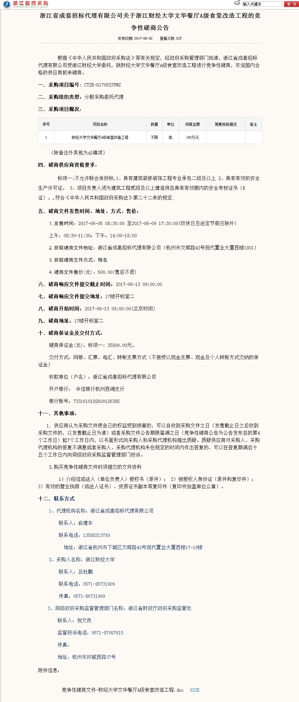 上一条:【浙财大2017-10】关于ued体育 楼宇终端(有线电视及宽带)项目的单一来源采购谈判公告下一条:【ZZCG2017H-GK-X011】浙江省政府采购中心关于ued体育 (2017年文华校区)保安服务采购项目的公开招标公告