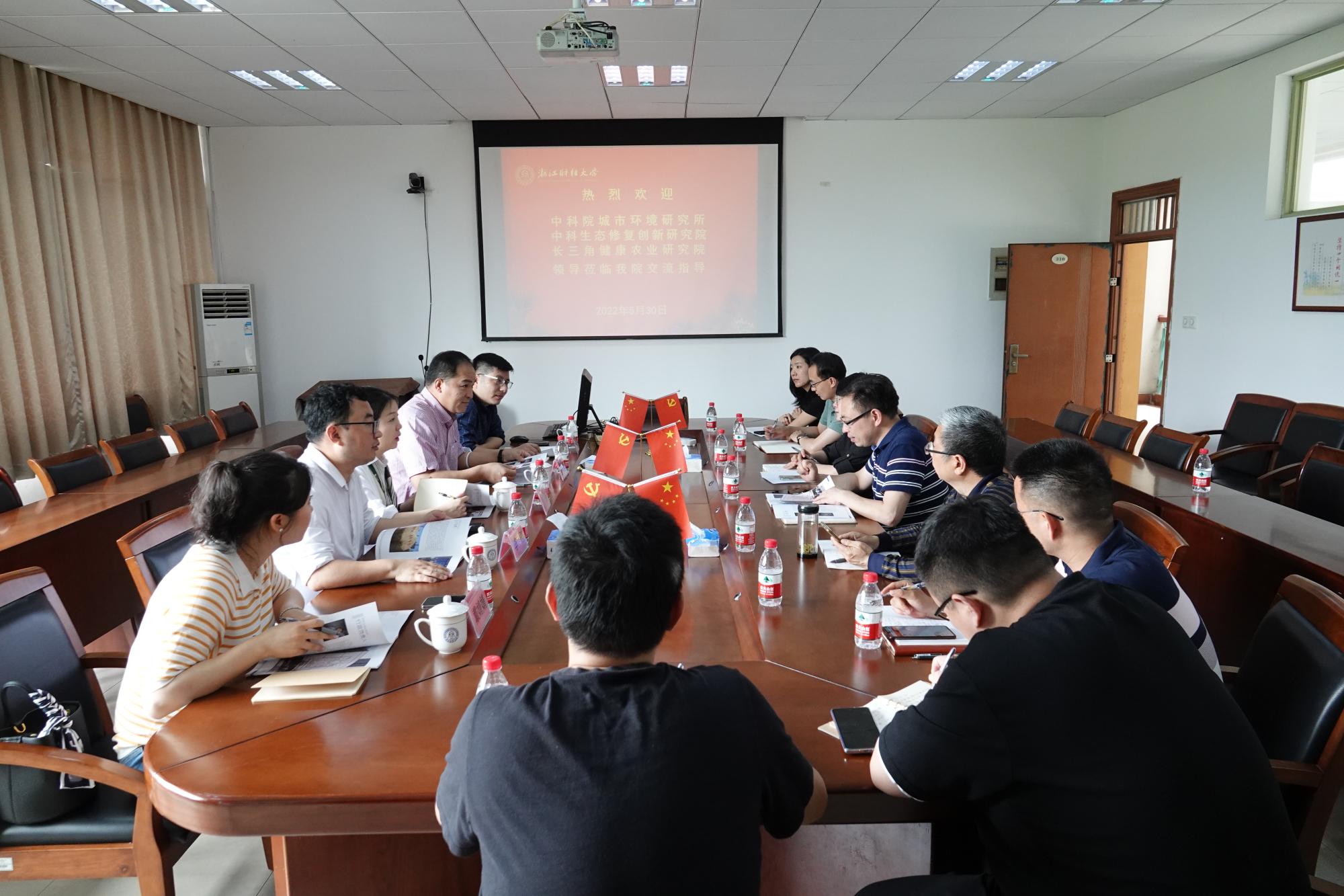 5月30日,中科院城市环境研究所科技处卢新处长,长三角健康农业研究院李刚院长,中科生态修复研究罗莎院长,倪国荣副院长一行到土地与城乡发展研究院调研指导。地研院院长吴绍华、副院长祝锦霞及相关教师参加了交流和讨论。