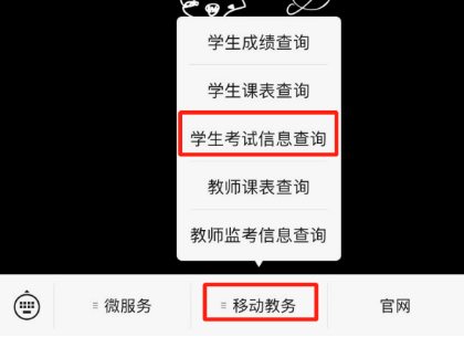 (一)学生进入“ued体育 教务处”微信公众号,点击下方菜单“移动教务”——“学生考试信息查询”,选择考试名称“2022-2023-1课程期末考试(下沙校区)”,点击查询即可。