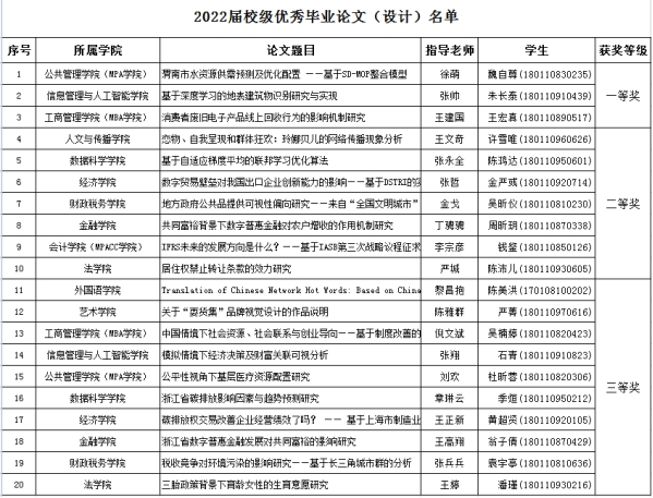 根据《ued体育 本科生优秀毕业论文(设计)奖、毕业论文(设计)优秀指导教师评选办法》文件精神,经学院人才培养委员会评审并推荐、学校组织专家组评审,魏自尊等同学的20篇毕业论文(设计)被评为2022届校级优秀毕业论文(设计),徐萌等20名指导教师被评为毕业论文(设计)优秀指导教师,现予以公示。对评选结果若有异议,请书面或电话向教务处反映。公示日期:2022年7月4日-7月6日,联系电话87557073。