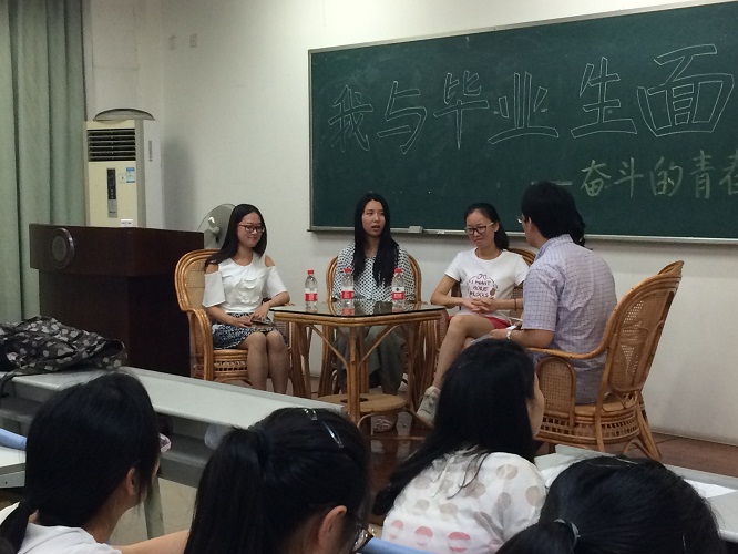 6月12日晚,“我与毕业生面对面——奋斗的青春最美丽”活动在会计学院楼205教室成功举行。本次活动由会计学院学生就业与职业发展协会主办。到场的风云毕业生有已被上海财经大学研究生录取的王婷学姐,已经获准进入毕马威会计事务所工作的沈狄昊学姐和已经被香港大学经济学专业研究生录取的程琳学姐。