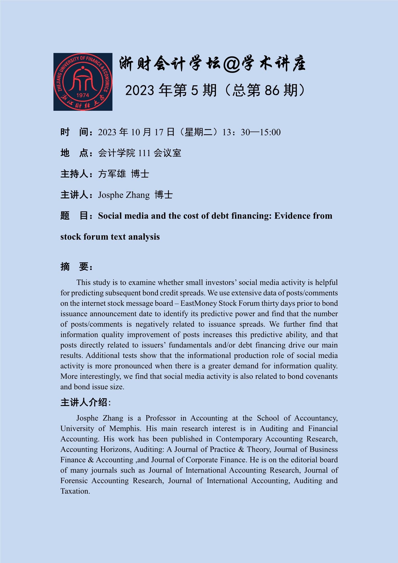 上一条:浙财会计学坛@业见讲堂2023年第1期(总第1期)——张国昀
