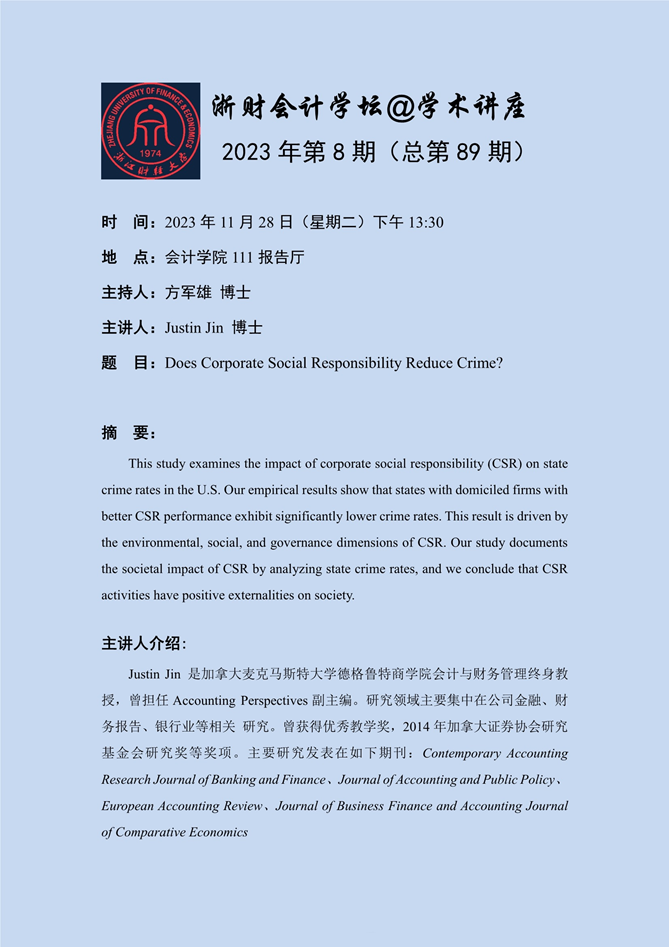 上一条:浙财会计学坛@学术讲座2023年第9期(总第90期)——庄汶资博士