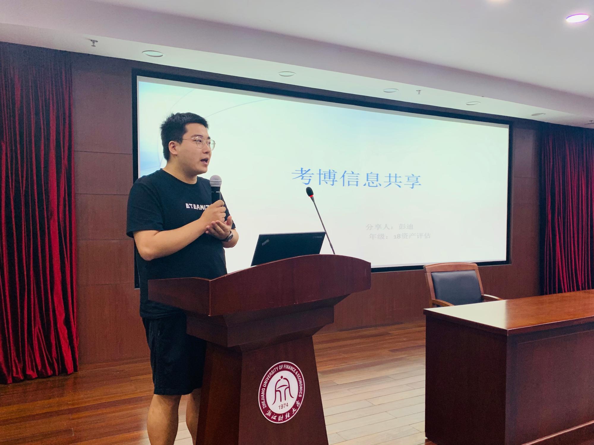 接下来,彭迪学长作为考博经验分享人,从考博的初心与风险、考博的具体形式、硕士研究生期间的准备工作以及临近考博的准备工作等方面,详细进行了考博的相关信息共享。彭迪学长用生动幽默的语言,将考博话题从各个角度描绘展现,在新生中引起了极大的反响。