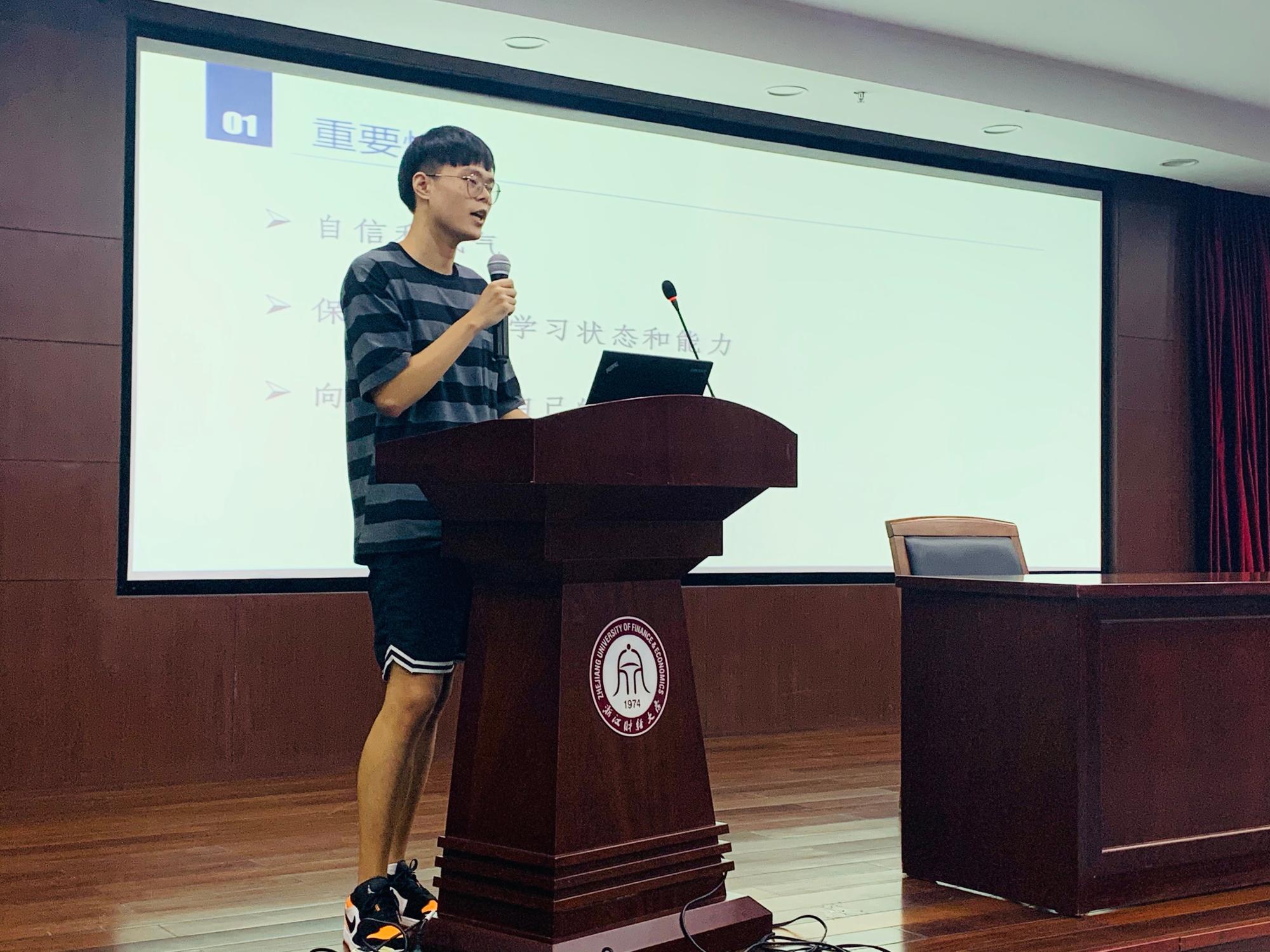紧接着,张雪娇学姐作为评奖评优体系介绍人,细致地讲解了各级奖学金特征、综测模式的具体构成以及评优体系的具体类别。她鼓励2020级新生踊跃参与各类竞赛,积极申报各类课题,主动参与学生工作和用心投入创新实践,争做敢闯敢拼的会院人。