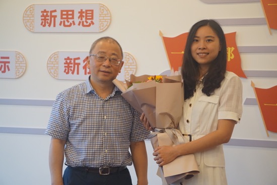 会上,钟晓敏校长详细询问了袁怡闻老师在工作、学习、生活中的情况,对袁怡闻老师潜心教学所付出的努力表示肯定,对她所取得的优异成绩表示祝贺。钟校长鼓励袁怡闻老师再接再厉,为会计学院的发展贡献更大力量。袁怡闻老师对学校的关怀表示感谢,并表示将不辜负学校的期望,以更加饱满的热情做好本职工作。