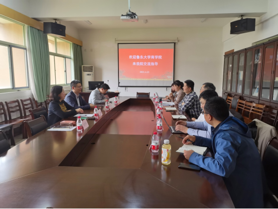 此次考察的主题是教学管理、专业建设、学科建设等方面的工作经验交流。会上,李宗彦副院长对鲁东大学一行的到来表示热烈欢迎,介绍了我院在专业建设、学科竞赛、课程建设、国际化项目等方面的基本情况。鲁东大学张磊副院长对学院的热情接待表示感谢,并介绍了鲁东大学商学院的基本情况。随后,吕岩老师等与来宾就一流课程建设、学科竞赛、学生培养与就业等具体问题展开了深入交流与讨论。