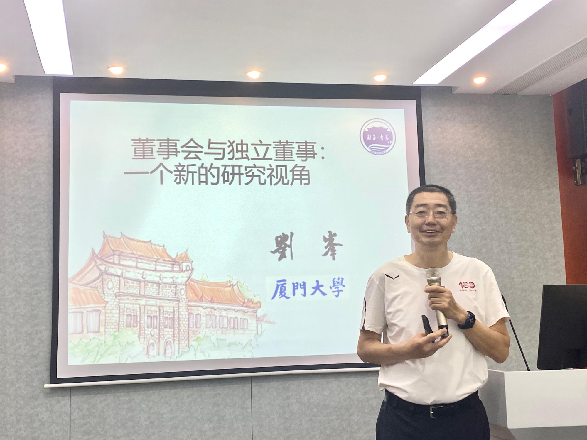 讲座伊始,刘峰教授给大家介绍了厦大的校园环境与文化,以此激励大家早睡早起,养成良好的习惯,并且要自信,热爱自己的专业。接着,刘教授讲解了他关于董事会与独立董事的研究,指出当前此类问题研究存在巨大局限。刘教授倡导对于董事会与独立董事的研究应该回归本真,需要关注两者最基本的问题,即独立董事到底能发挥什么作用?董事会为什么存在?以及从自愿到强制,对董事会与独立董事制度有什么影响?