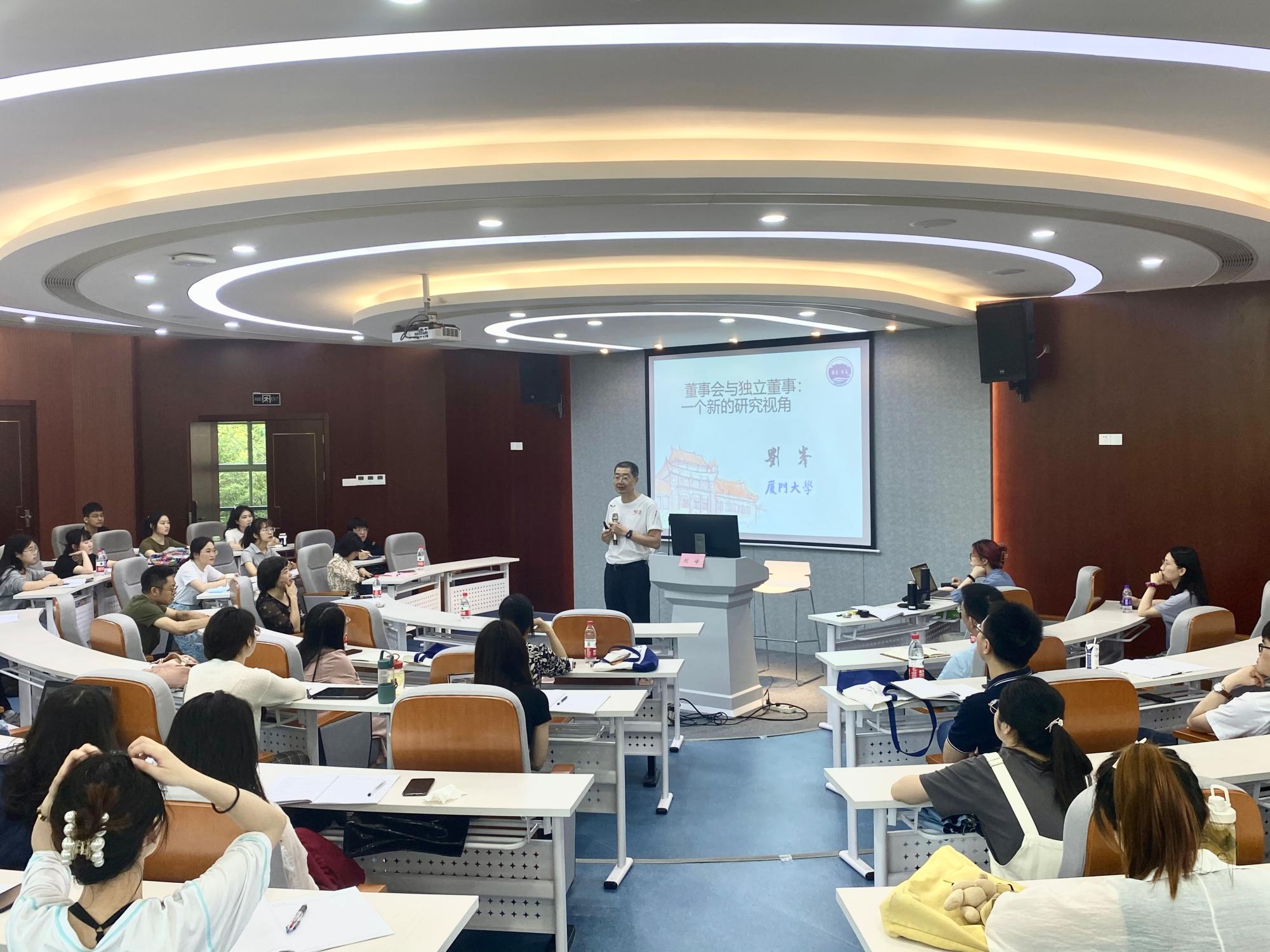 5月10日上午,“浙财会计学术论坛”2021年第3期在会计学院楼111报告厅拉开序幕。本期论坛主题为“董事会与独立董事:一个新的研究视角”,由我国财政部名家、厦门大学会计发展研究中心主任、《当代会计评论》主编刘峰教授主讲。本次论坛由会计学院副院长李文贵老师主持,会计学院2020级全体会计学硕及部分教师参与了此次论坛。