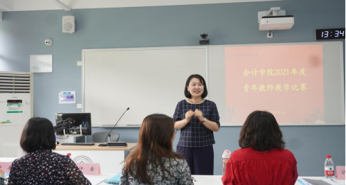 5月13日下午,会计学院在A204教室举办2021年度青年教师教学竞赛。张爱珠老师、傅黎瑛老师、赵宇恒老师、吕岩老师、袁怡闻老师作为本次教学比赛的评委,学院共有8位青年教师报名参加,近三年入职的老师全程观摩了本次比赛。
