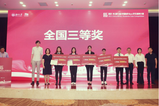 6月5日-6日,第七届中国MPAcc学生案例大赛复决赛在湖南大学举行,我院MPAcc团队“发际线总与我作队”荣获全国三等奖。该团队由骆铭民、赵宇恒和陈效东等老师共同指导,成员包括张紫嫣、詹璐瑶、章颖、赵淡惠、朱琳臻和朱佳莹等六位MPAcc学生。截至今年,我院累计获得4次分赛区优胜奖,今年更是实现了全国奖项的突破,创造最佳成绩。