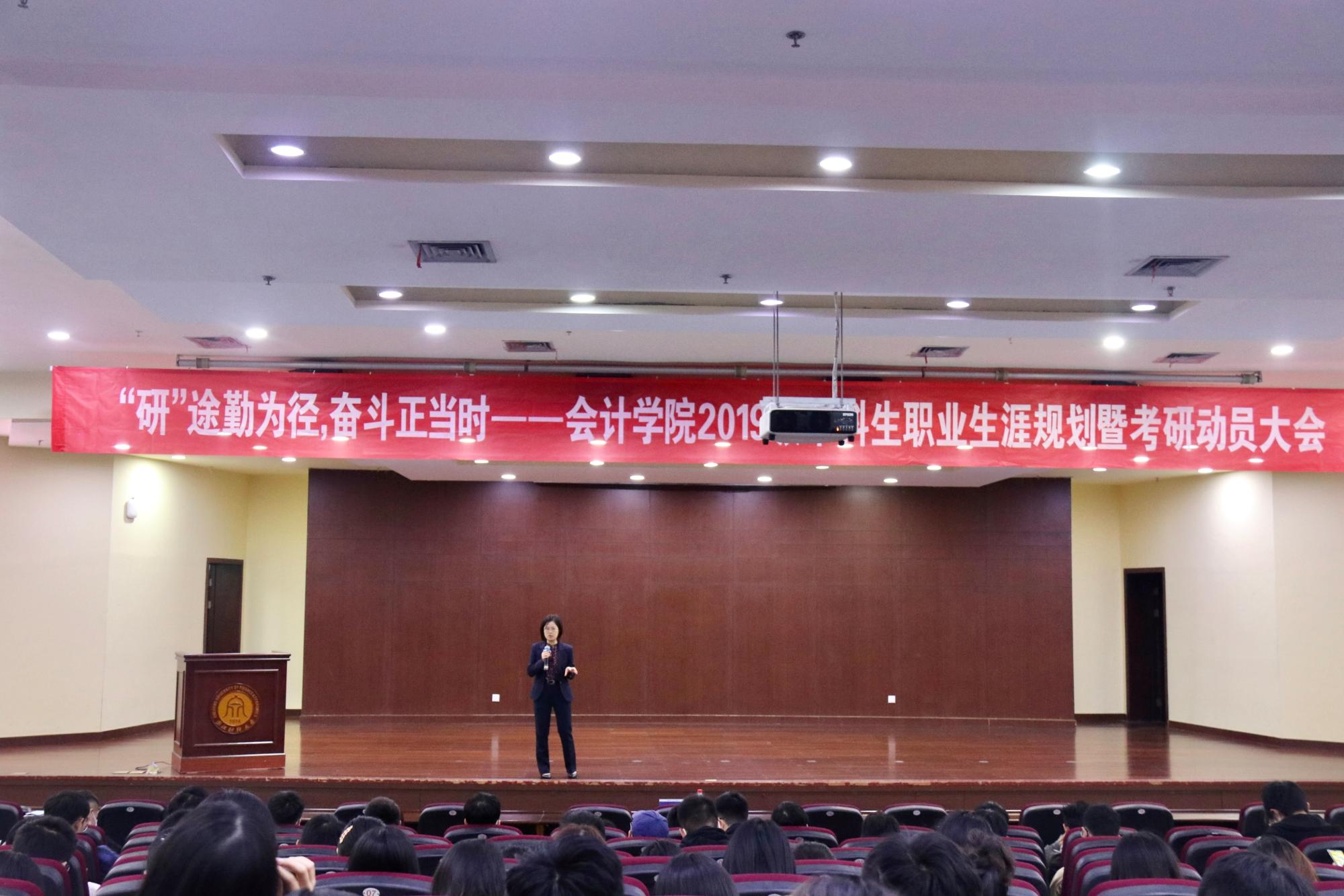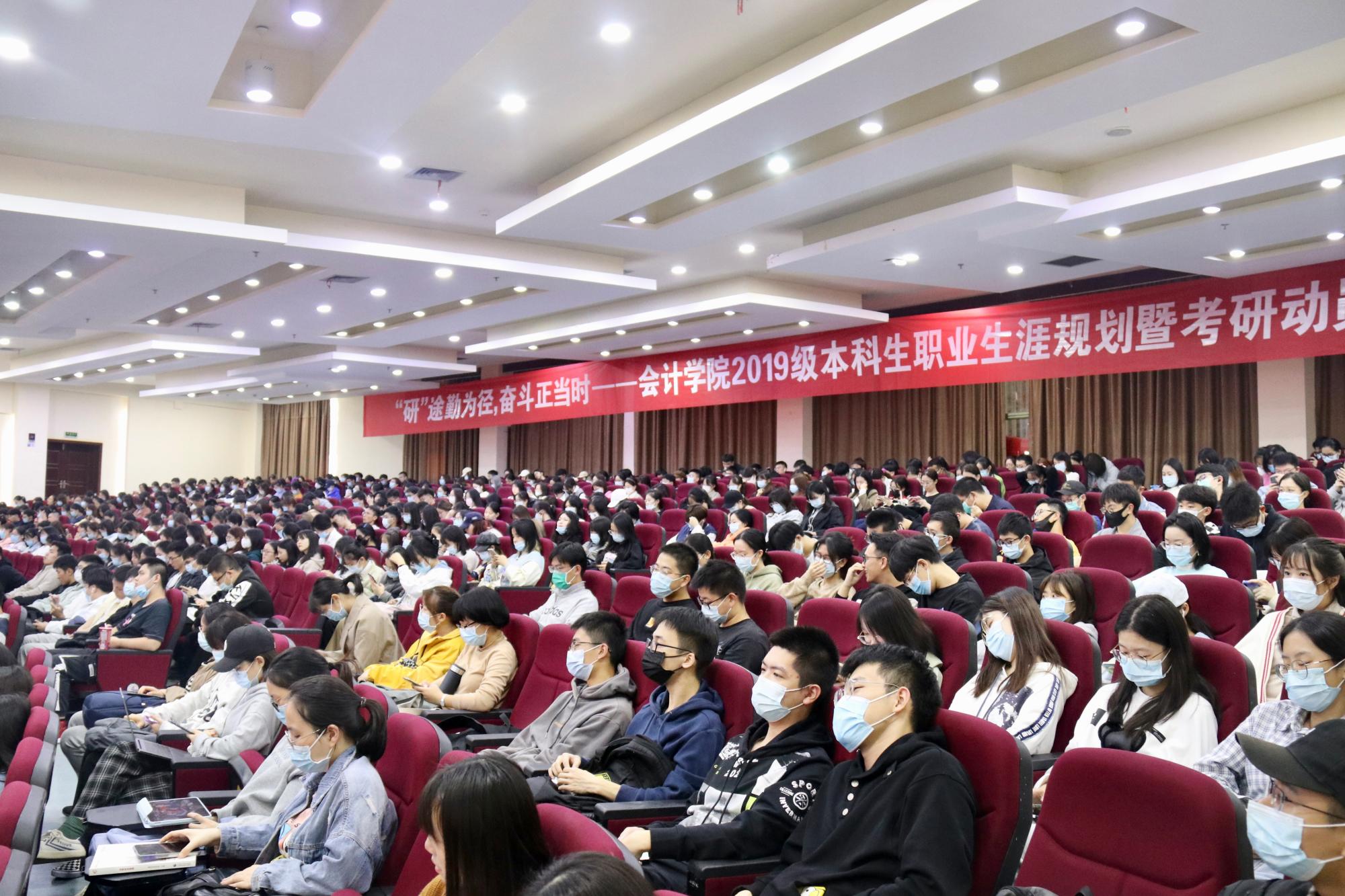 为帮助2019级学生明晰职业规划,明确考研重要性,为接下来的奋斗目标指明方向,我院于10月26日下午在学术中心第一报告厅举行了2019级本科生职业生涯规划大会暨考研动员大会。本次大会以“进德修业,与时偕行”为主题。会计学院副院长李文贵教授出席会议,2019级辅导员老师以及全体2019级学生参加了本次大会。