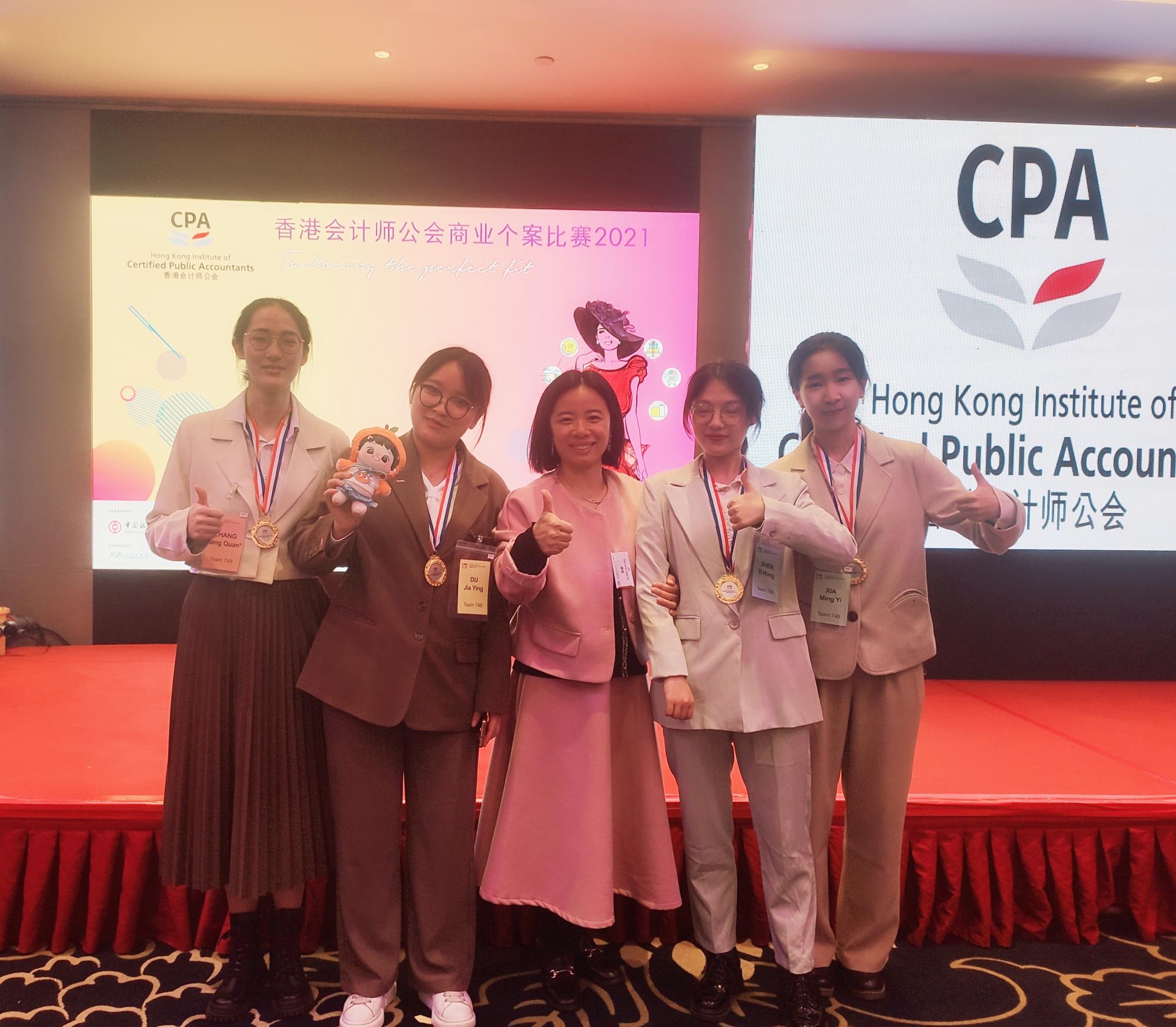 11月27日,2021年香港会计师公会商业个案比赛全国赛在广州花园酒店落下帷幕,我院学子张清泉(19财务1班),杜佳莹(19财务1班),沈怡泓(19CIMA),夏茗宜(19ACCA)在徐静老师带队指导下从407支队伍中脱颖而出,经过两轮的选拔,成功入围八强,进入总决赛,与来自香港中文大学(深圳)、中央财经大学、北京师范大学-香港浸会大学联合学院等著名高校学子同台竞技。在比赛中,我院选手充分展现了扎实的英文表达功底、自信的态度、富有逻辑的分析和默契的配合,最终荣获优胜奖。