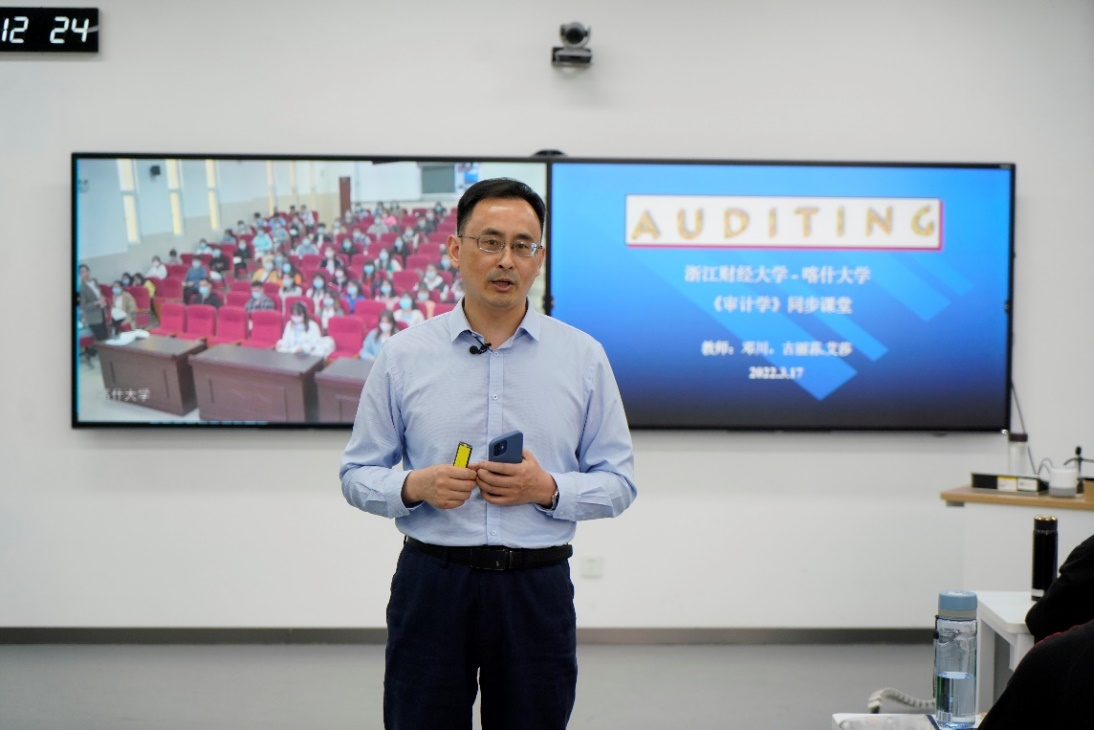 《审计学》是我校的浙江省一流建设课程,为全面贯彻“慕课西部行”计划,邓川老师及智慧树公司相关工作人员积极落实与喀什大学同步课堂的筹划,在前期做了充分的准备,了解喀什大学的课程需求、进行师资匹配以及教学安排的协调,包括两地教学时间的选择,都划入同步课堂考量的范畴。