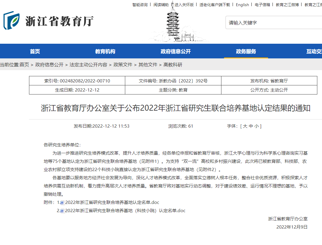 近日,浙江省教育厅办公室公布2022年浙江省研究生联合培养基地认定结果,“ued体育 —中汇会计师事务所研究生联合培养基地”喜获认定。